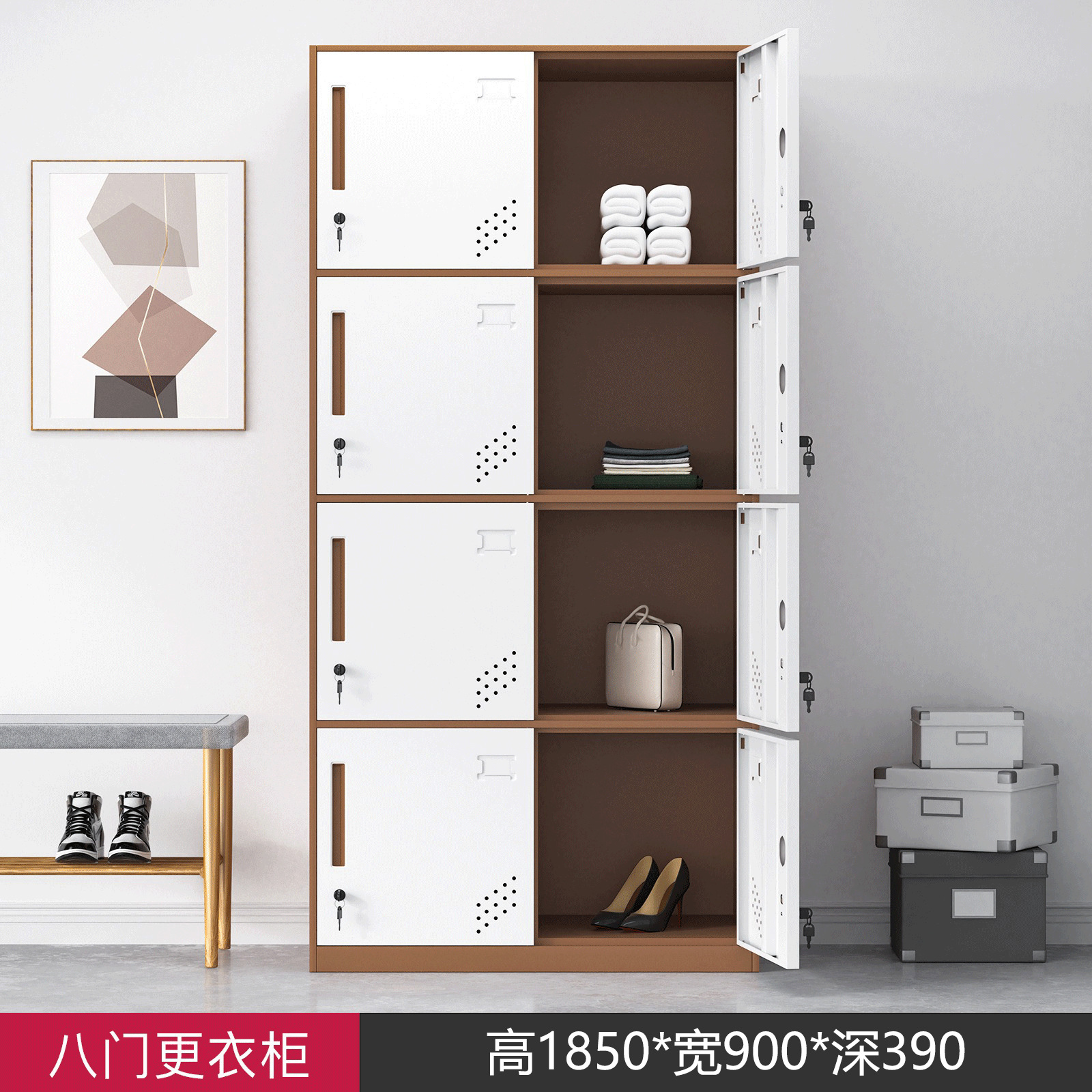 • 8도어 리커브 옷장 커피 화이트 색상