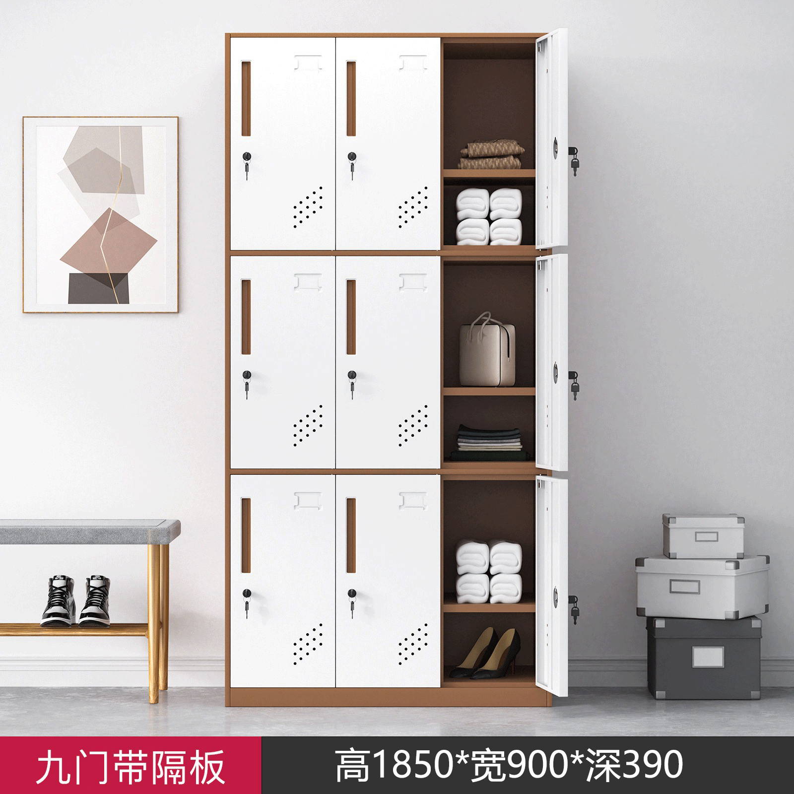 • 칸막이가 있는 9도어 커피색