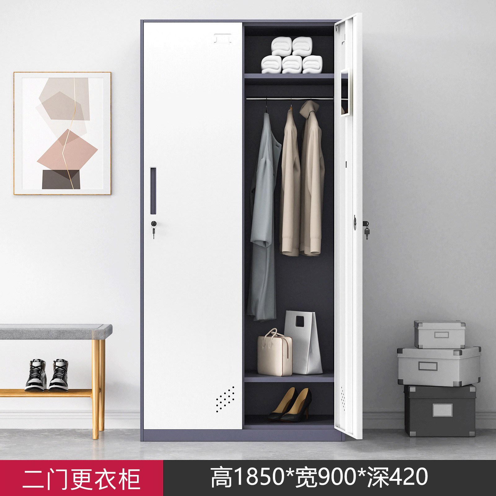 • 2도어 옷장 그레이와 화이트 색상