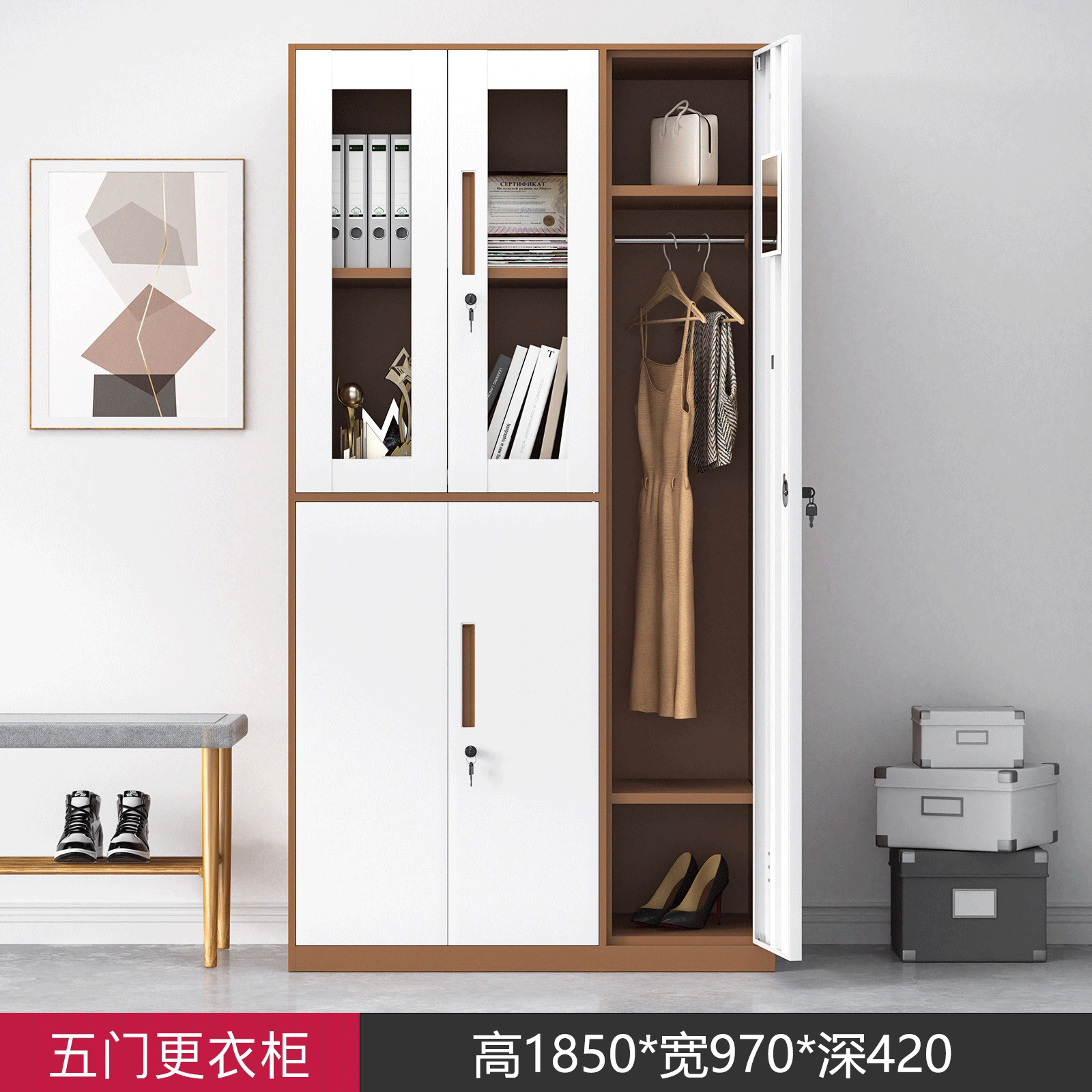 • 5도어 옷장 커피 화이트 색상