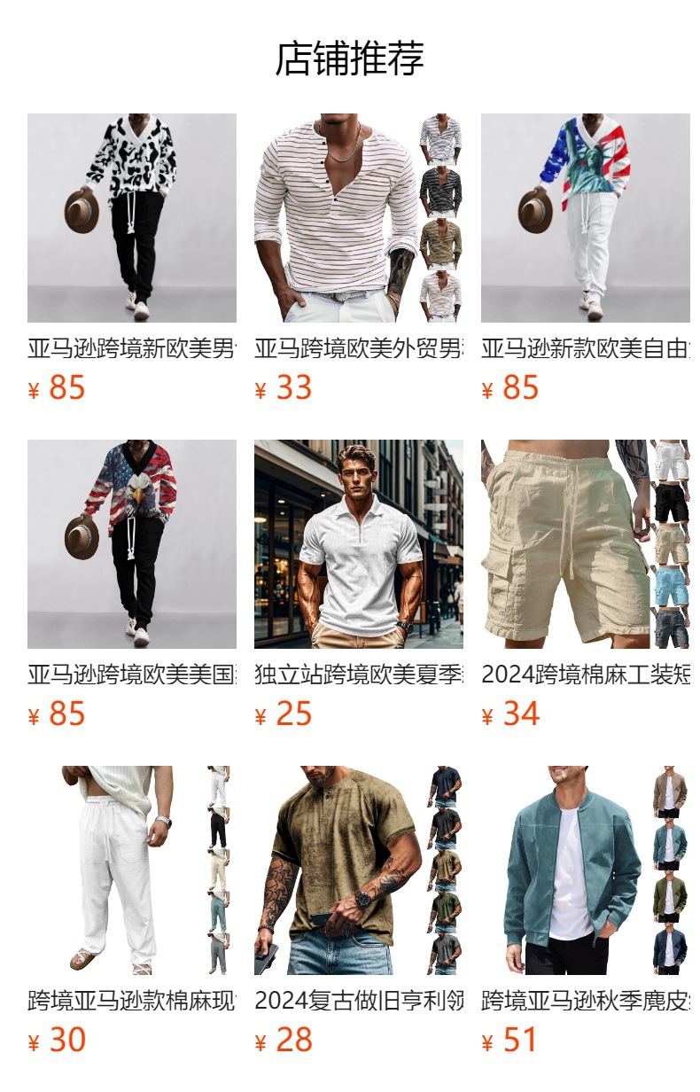 备注:本店铺主要对接跨境商家,所有款式为欧美尺码,衣服上只车洗水唛和码唛,方便跨境买家挂自己品牌吊牌,包装袋为透明拉链袋。