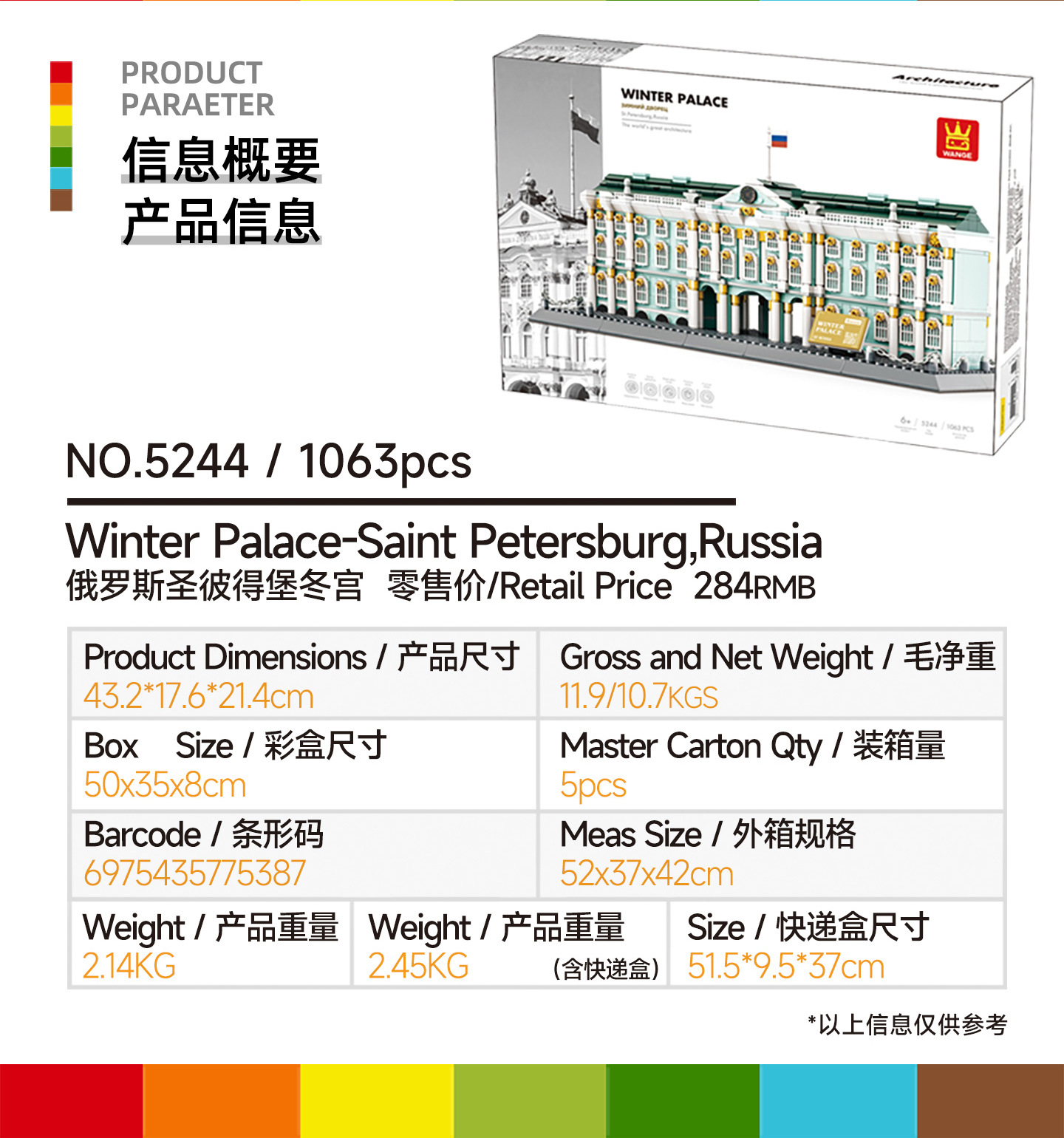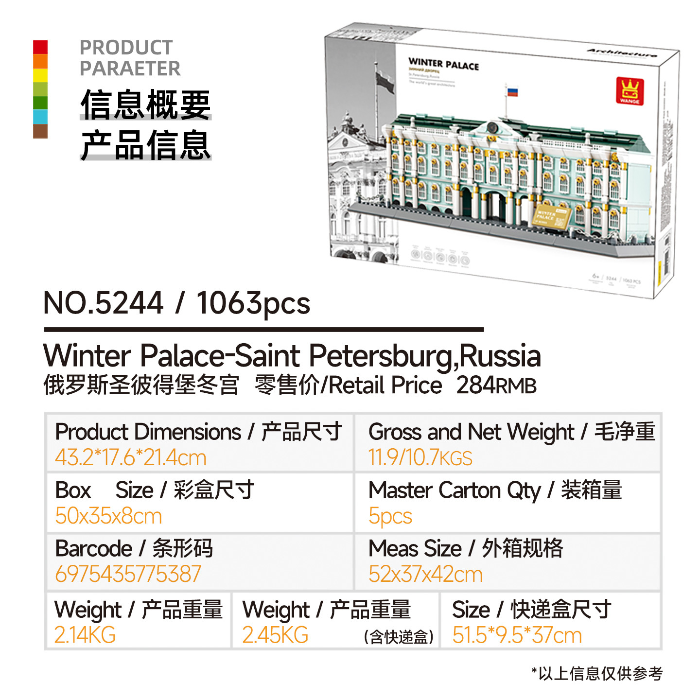 Wanger 빌딩 블록 러시아 상트 페테르부르크 겨울 궁전 국내 작은 입자 빌딩 블록 호환 어린이 조립 장난감 5244스토어 가기