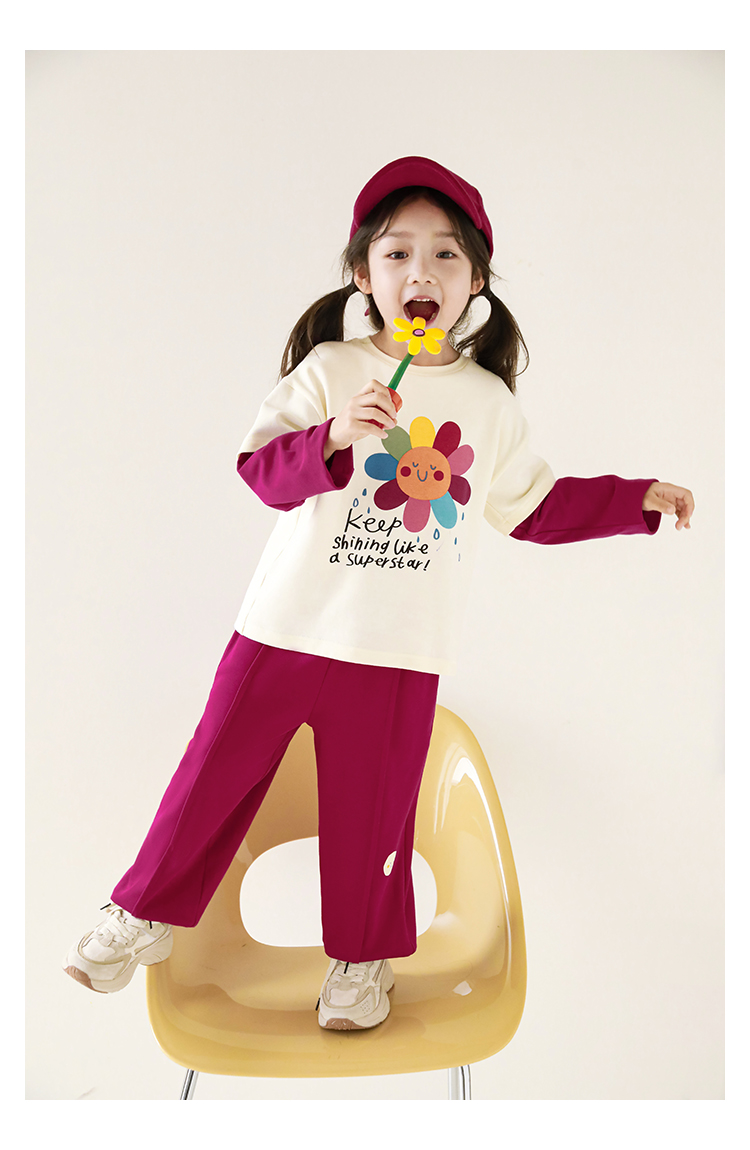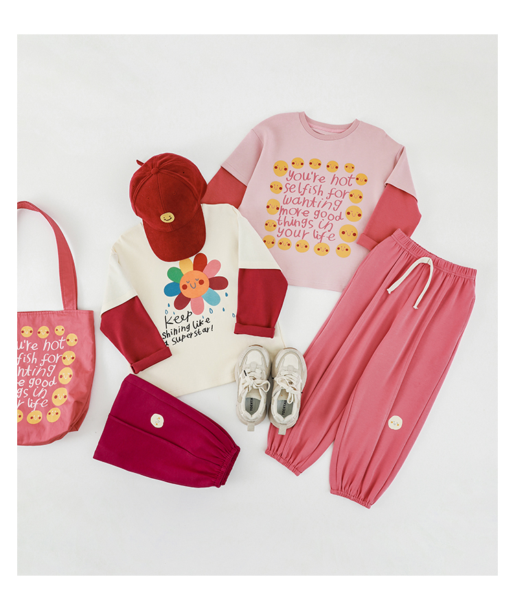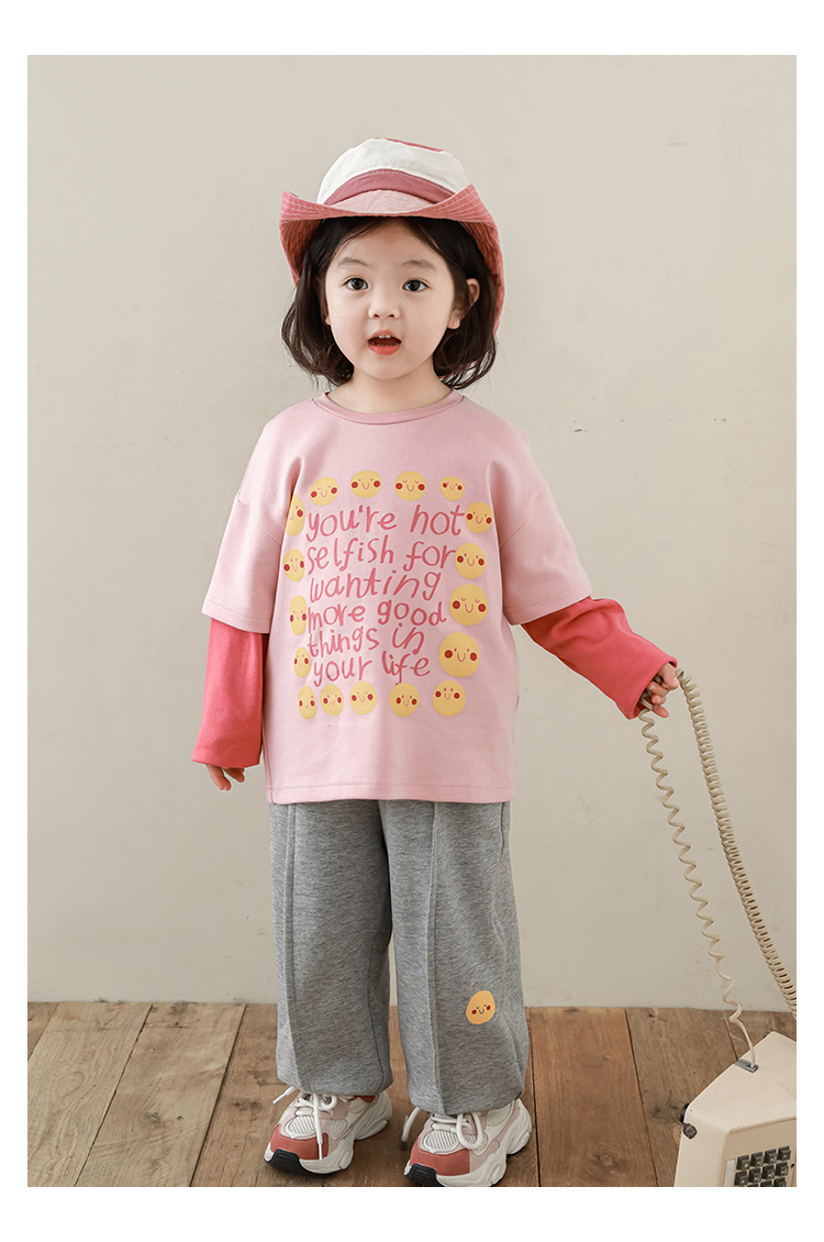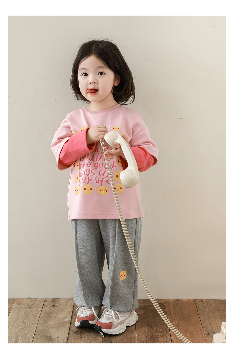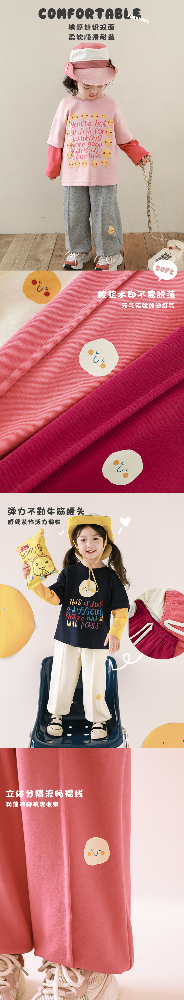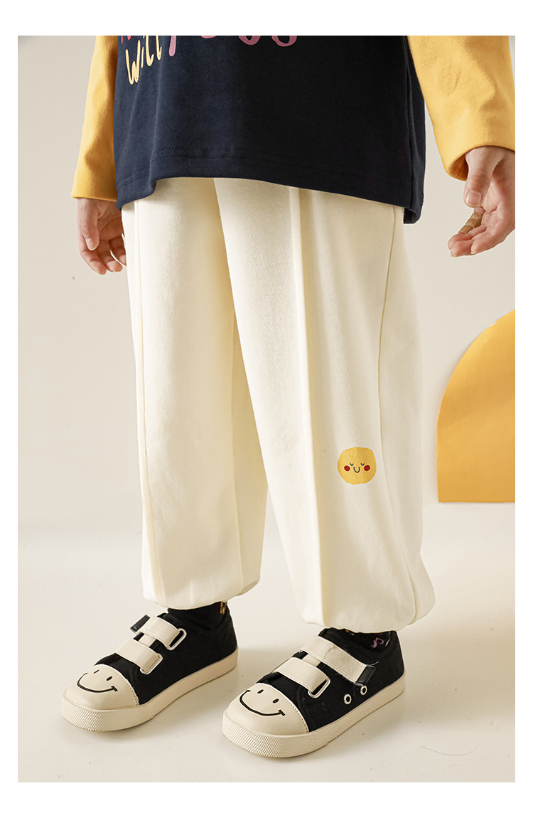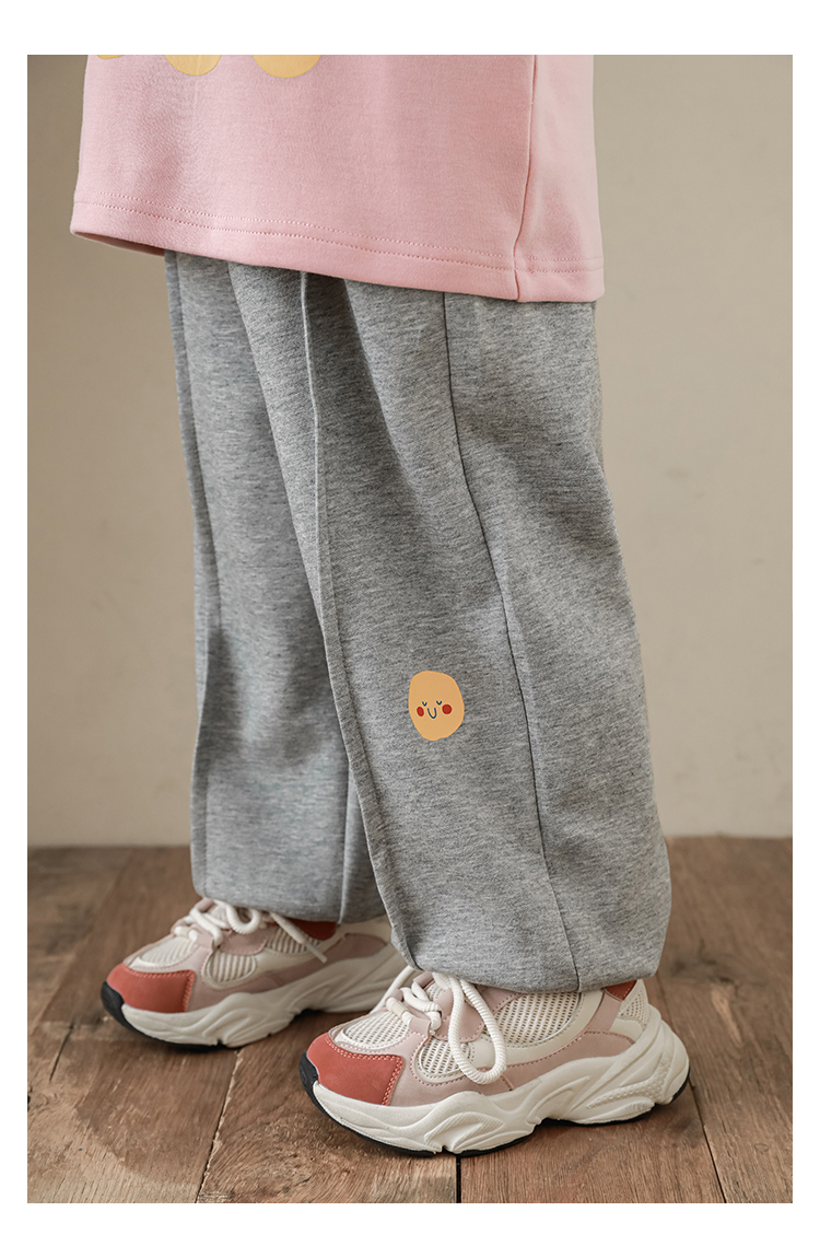 Wuri Boo Girl's Smiley Pants 가을 2025 새로운 어린이 활주 귀여운 부드럽고 섬세한 캐주얼 바지스토어 가기