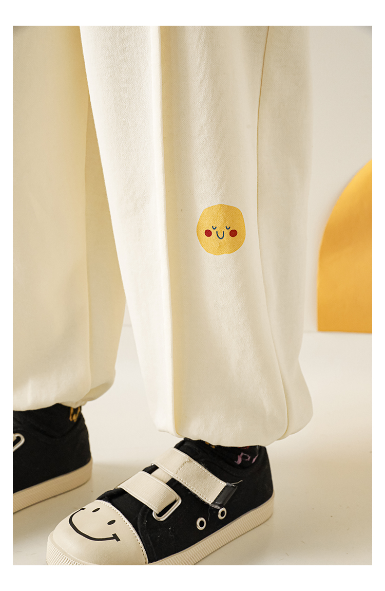 Wuri Boo Girl's Smiley Pants 가을 2025 새로운 어린이 활주 귀여운 부드럽고 섬세한 캐주얼 바지
