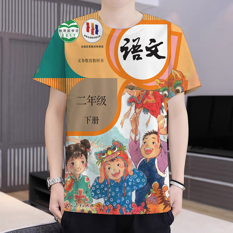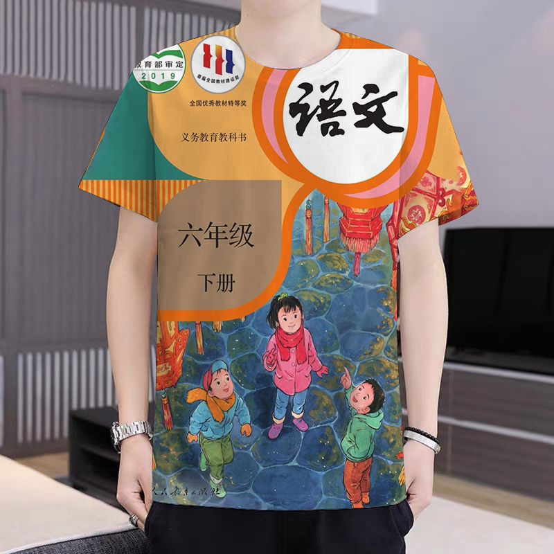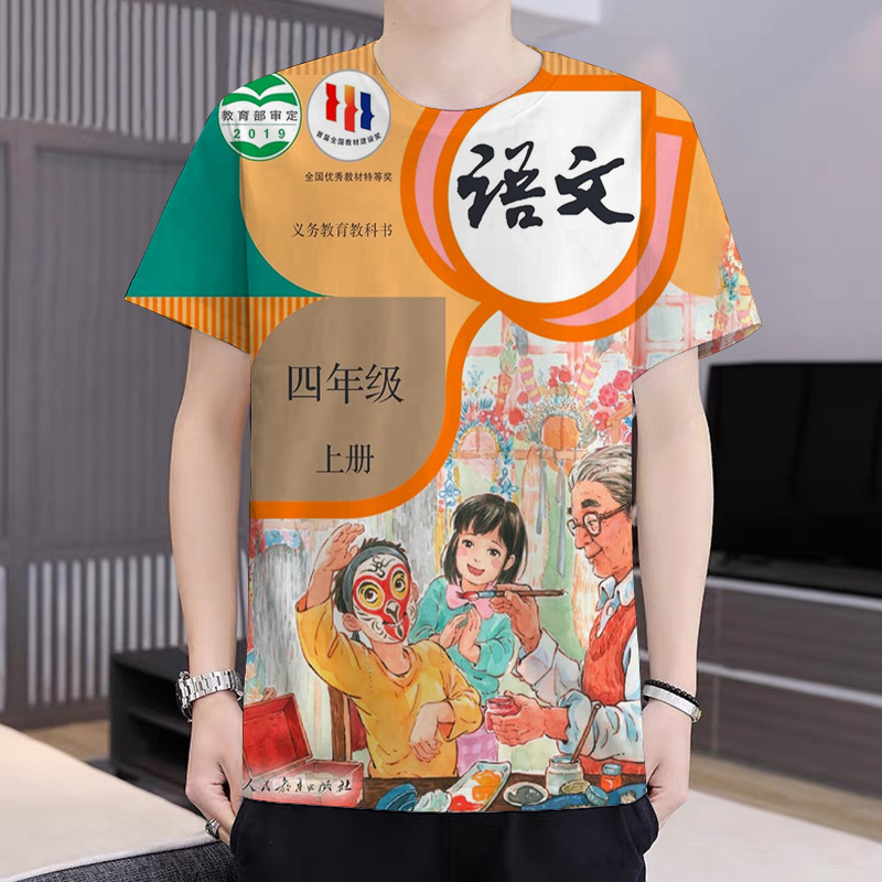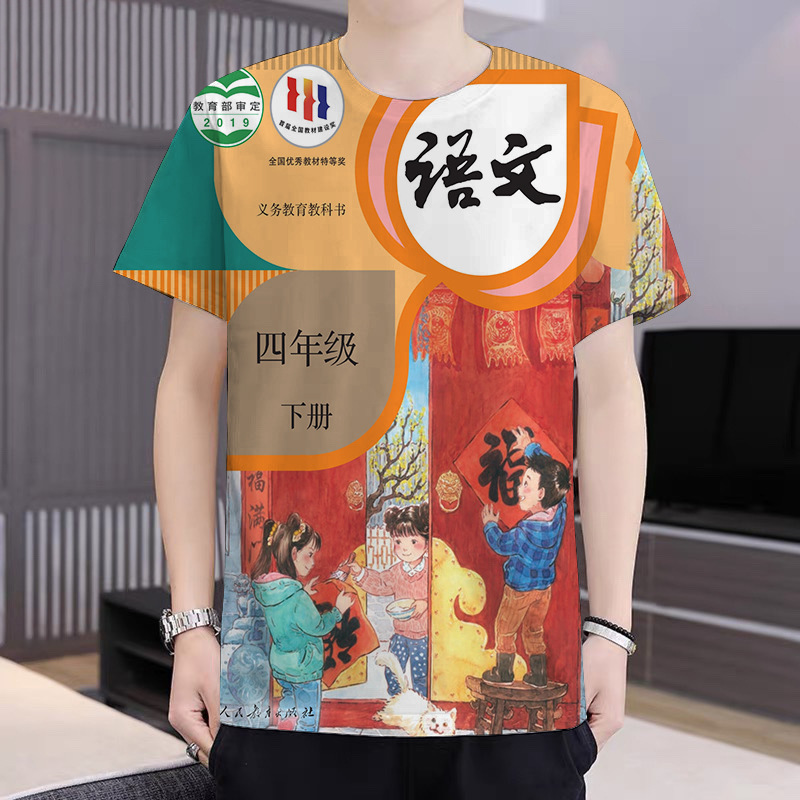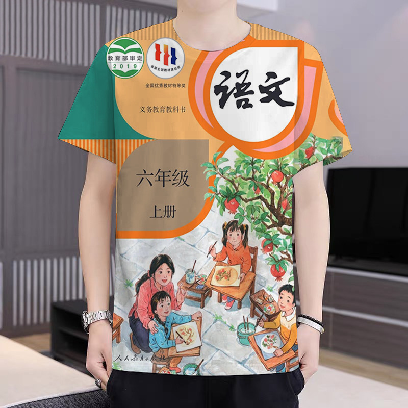 2024 새로운 TikTok 인기 패션 느슨한 남성 인쇄 캐주얼 트렌디 티셔츠 십대 반팔스토어 가기