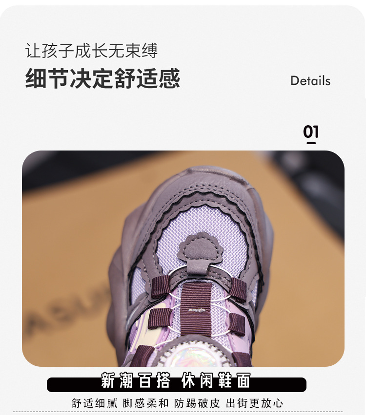 여아용 메쉬 통기성 운동화 2024 버튼 슈즈 미끄럼 방지 부드러운 밑창 캐주얼 슈즈 중대형 어린이용 트렌디 미끄럼 방지 디자인스토어 가기
