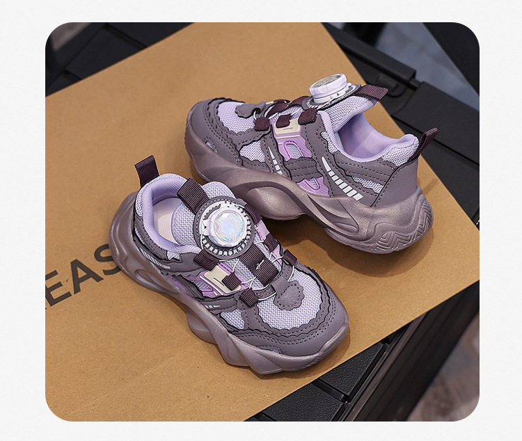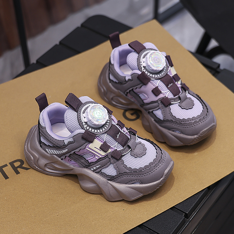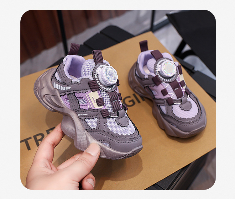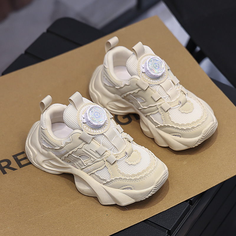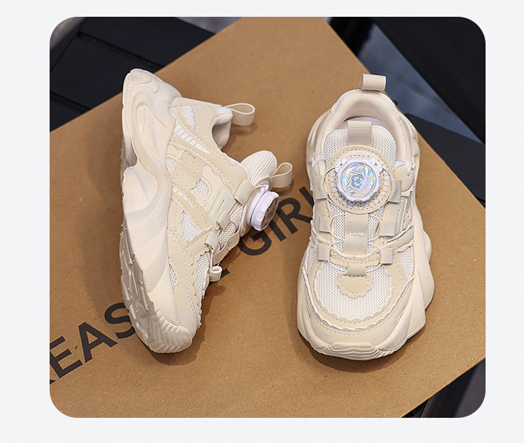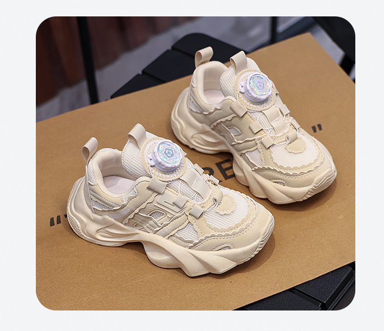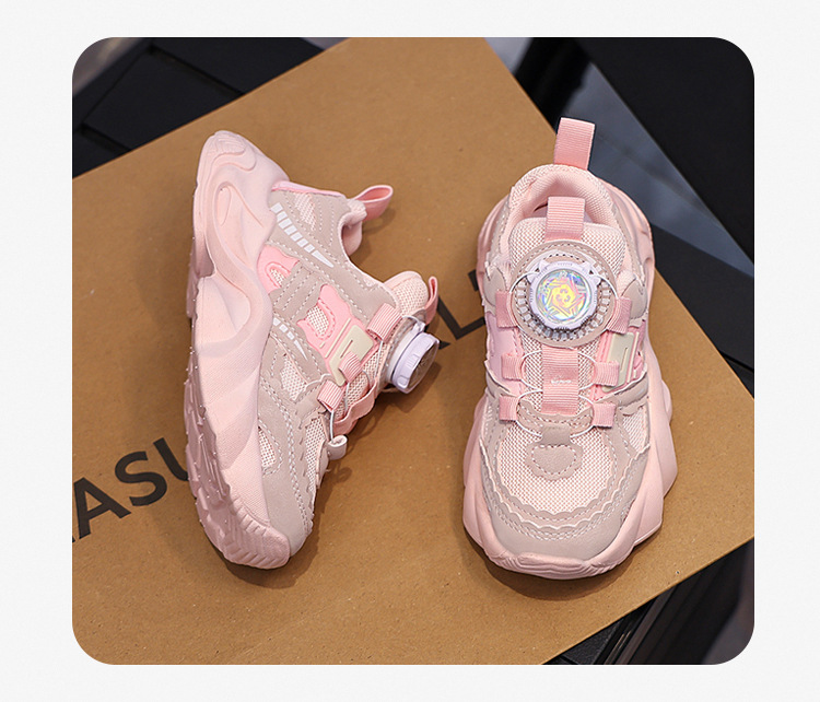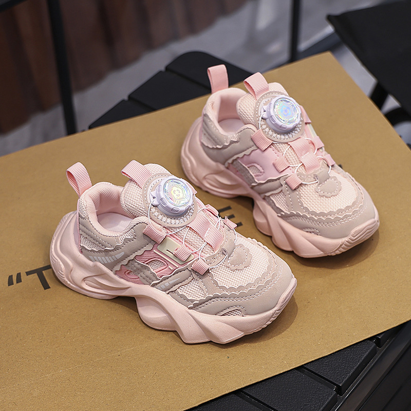 여아용 메쉬 통기성 운동화 2024 버튼 슈즈 미끄럼 방지 부드러운 밑창 캐주얼 슈즈 중대형 어린이용 트렌디 미끄럼 방지 디자인