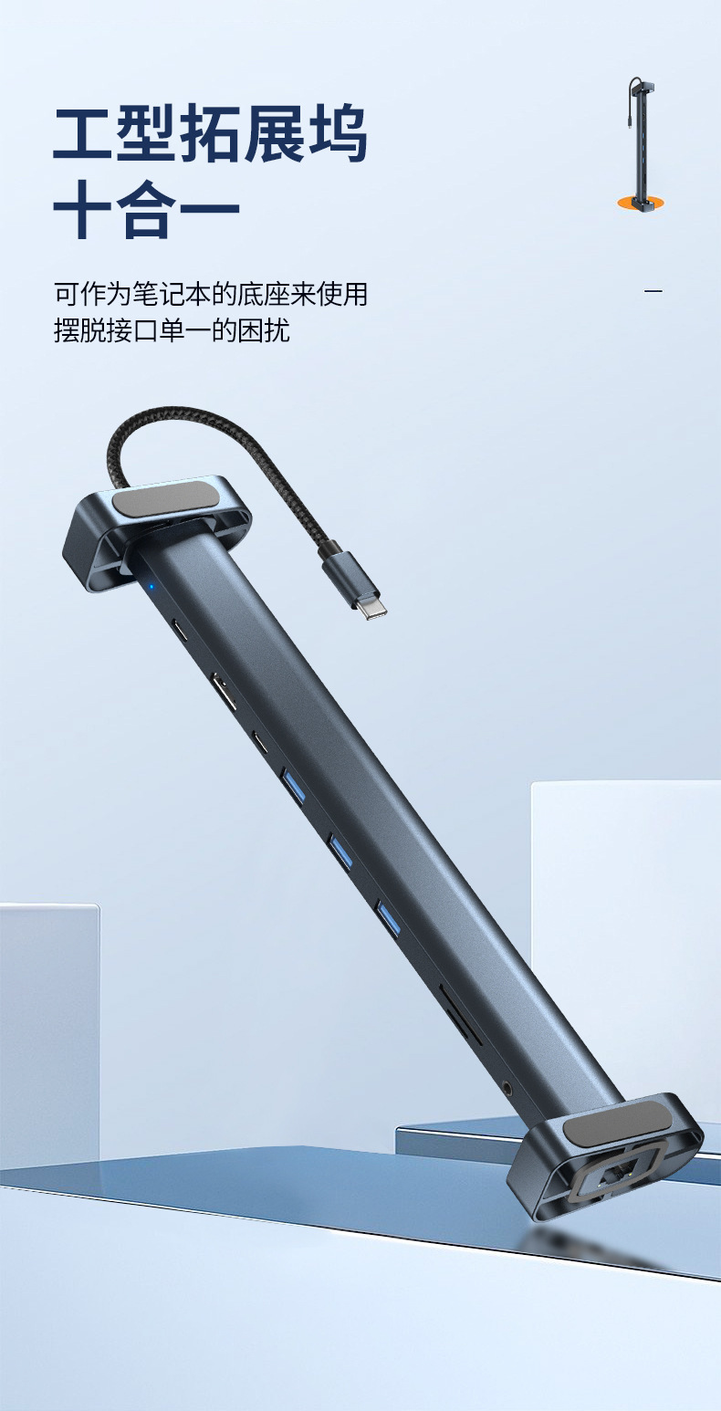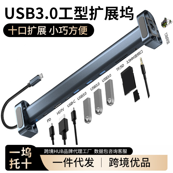 크로스보더 산업용 USB 확장 도크 10-in-1 Type-C to HDTV 확장 도크 다기능 베이스 허브스토어 가기