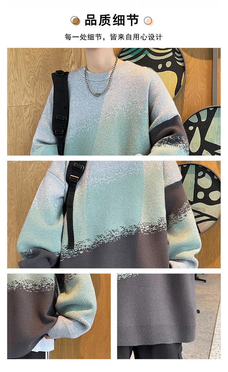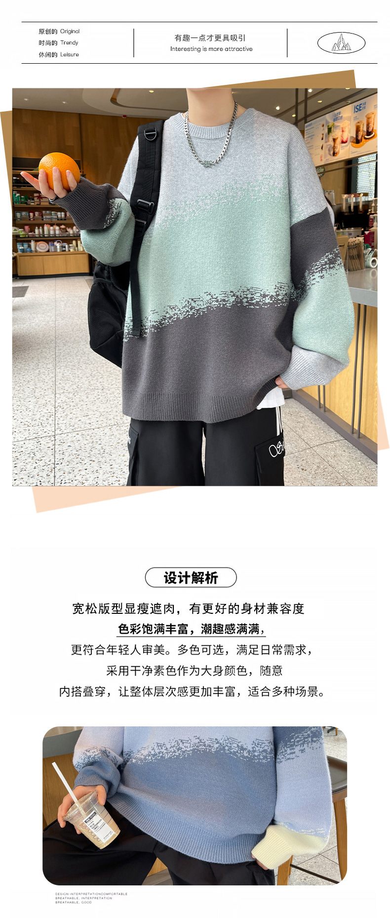홍콩 스타일 점진적 컬러 크루 넥 스웨터 남자의 느슨한 게으른 스타일 유행 두꺼운 플러스 사이즈 스타일 유행 브랜드 니트 스웨터 홍콩 스타일 8405스토어 가기