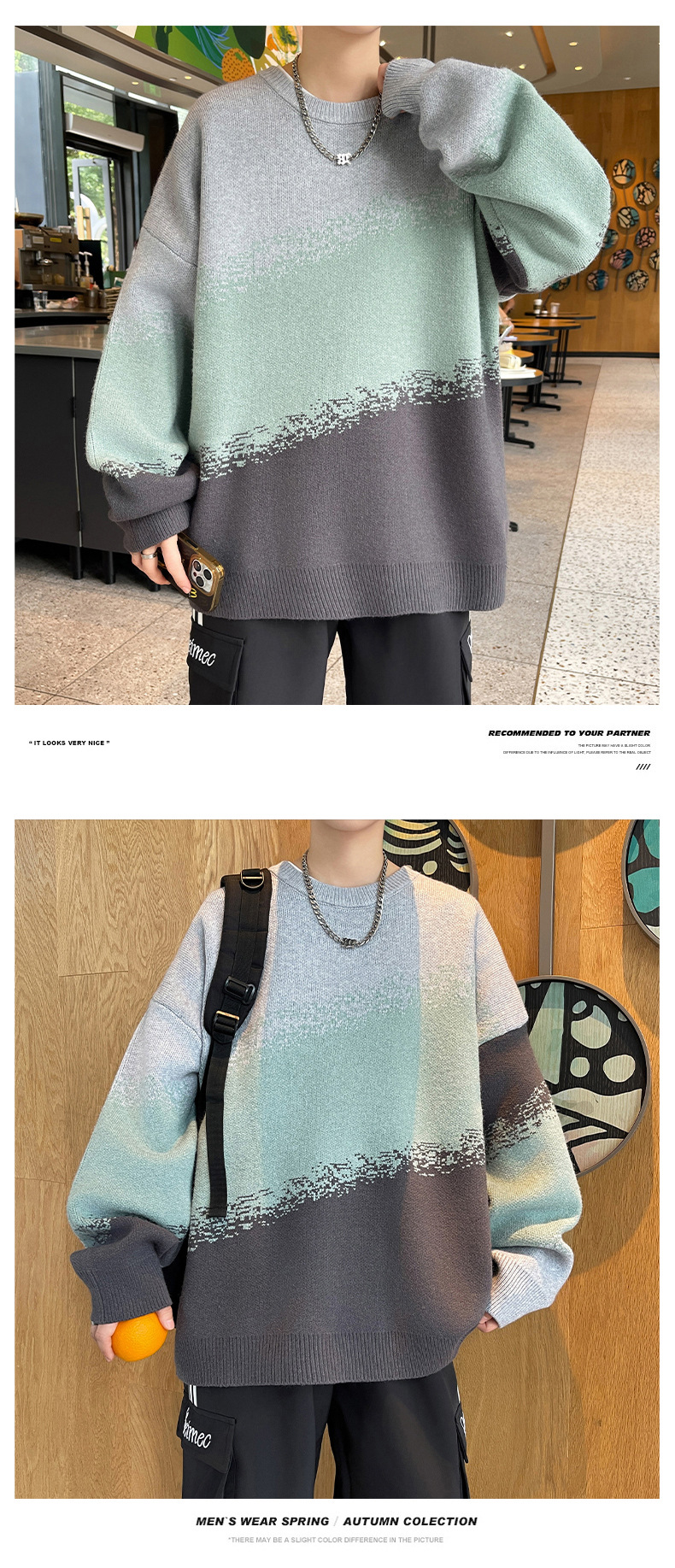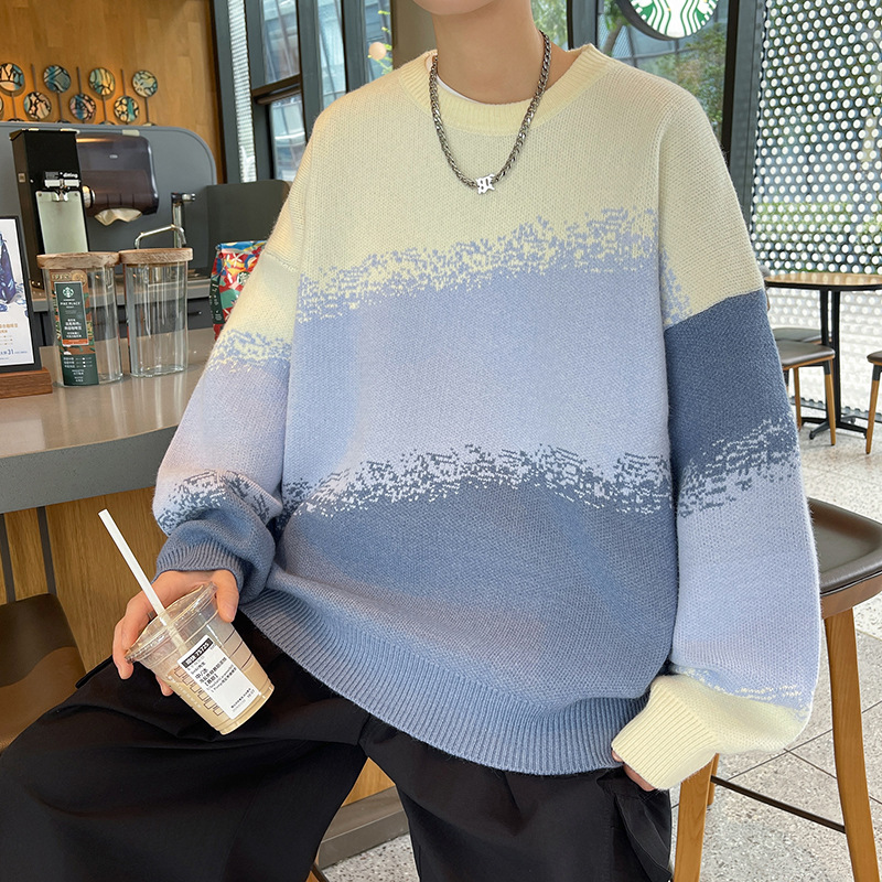 홍콩 스타일 점진적 컬러 크루 넥 스웨터 남자의 느슨한 게으른 스타일 유행 두꺼운 플러스 사이즈 스타일 유행 브랜드 니트 스웨터 홍콩 스타일 8405
