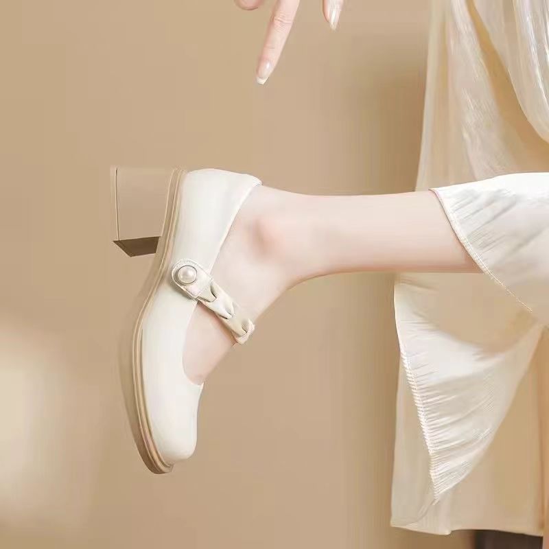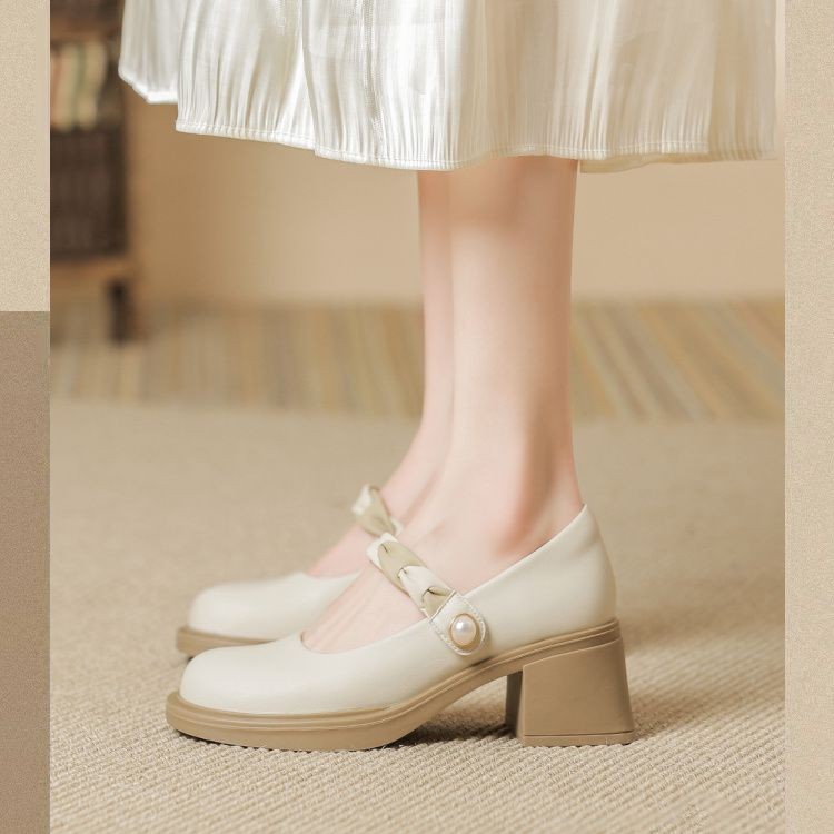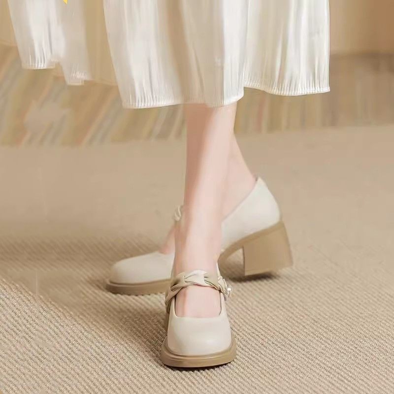 메리 제인 신발 여성의 새로운 리얼 소프트 가죽 화이트 2024 프랑스 이브닝 스타일 올 매치 소프트 가죽 젠틀 안락 입 두꺼운 힐