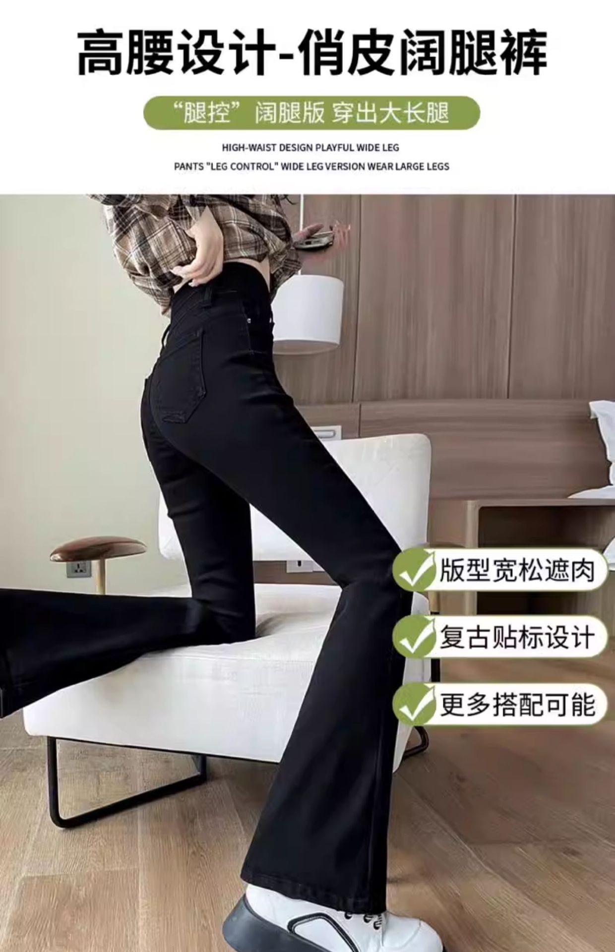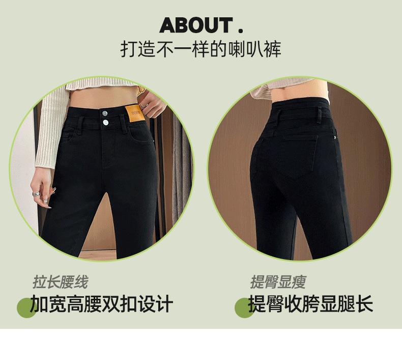 검은 플레어 바지 여성의 봄과 가을 2024 새로운 폭발 높은 허리 슬림 가을 작은 마이크로 데님 바지스토어 가기