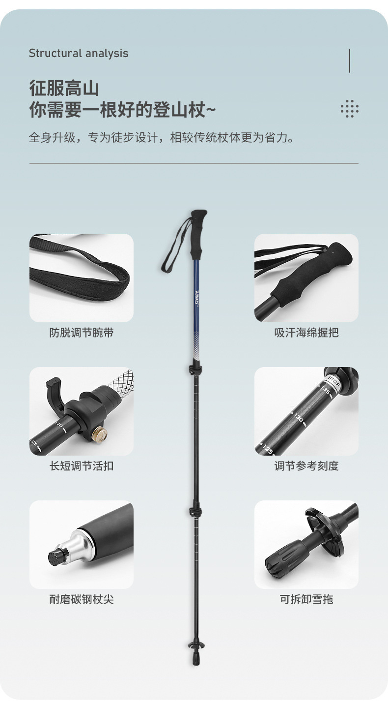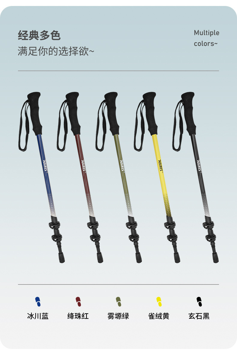 알루미늄 합금 3 섹션 망원경 야외 편리한 저장 조정 빠른 릴리스 잠금 등반 스틱 스트레이트 핸들 등산 손 목발