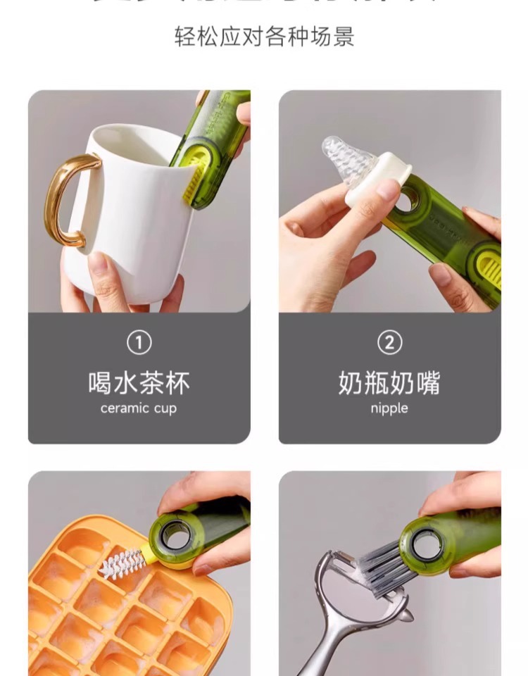 3-in-1 컵 커버 브러시, 물컵 청소, 틈새 홈 청소 브러시, 보온병 컵 입 브러시, 스폰지 긴 손잡이 컵 브러시