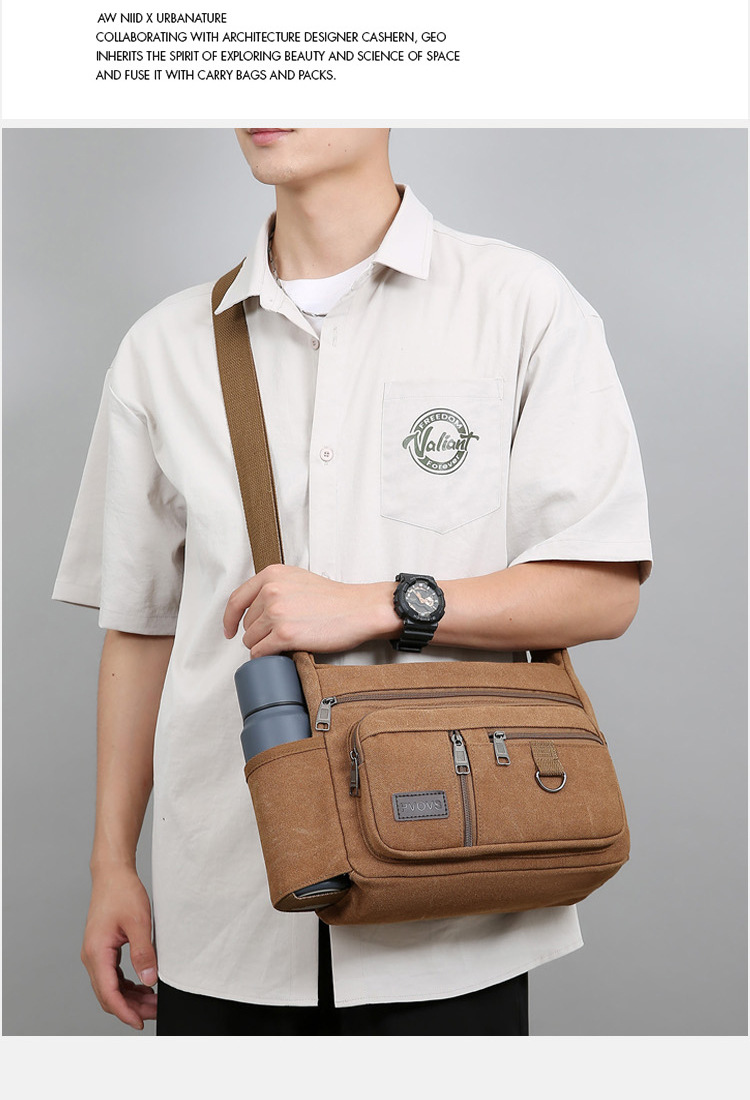 캔버스 가방 남성용 어깨 가방 크로스 바디 백 다층 대용량 배낭 캐주얼 가방 대형 워터 컵 빈티지 사첼스토어 가기