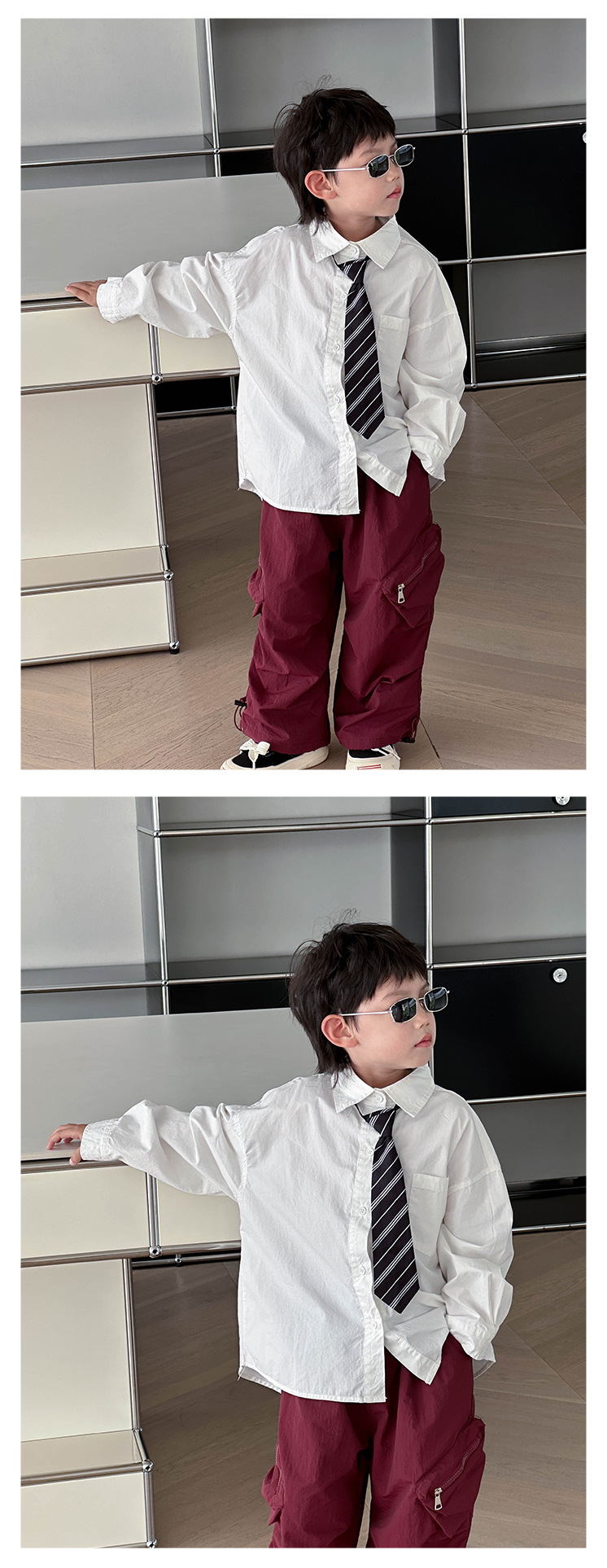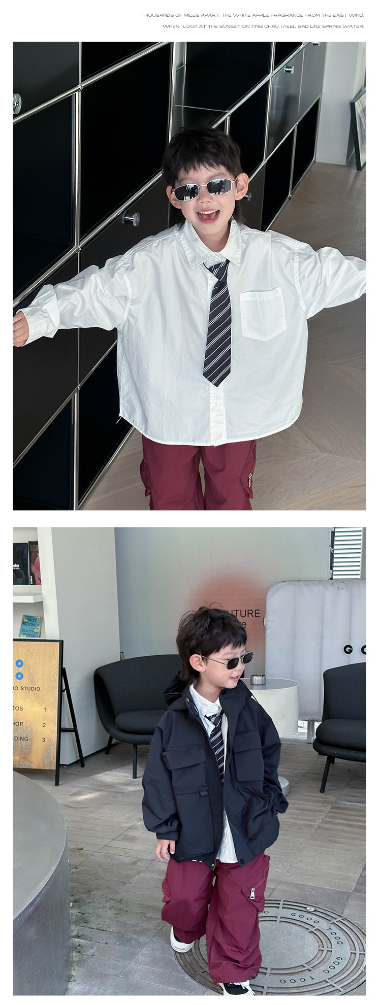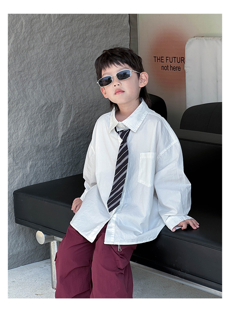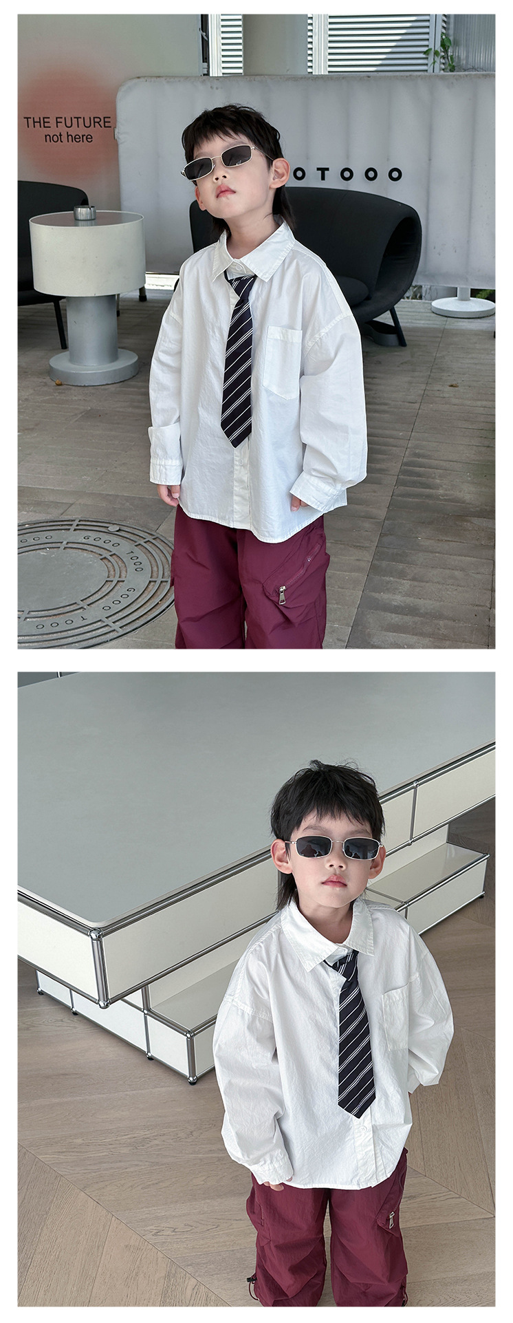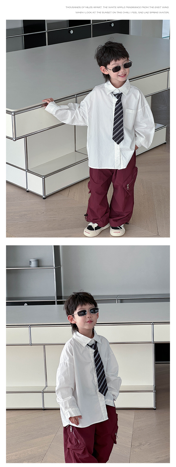 소년 넥타이 셔츠 2025 가을 새로운 어린이 다목적 옷깃 셔츠 어린이 봄, 가을 긴팔 탑 유행스토어 가기