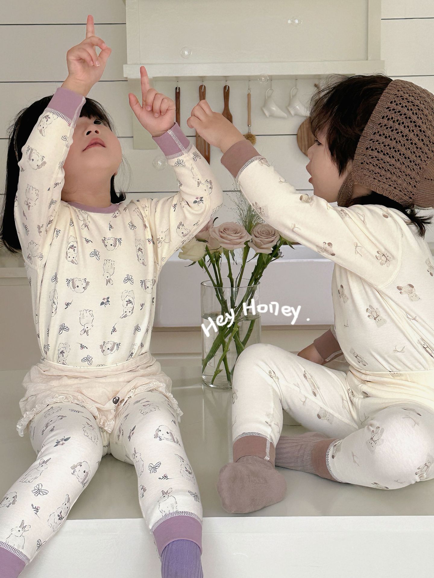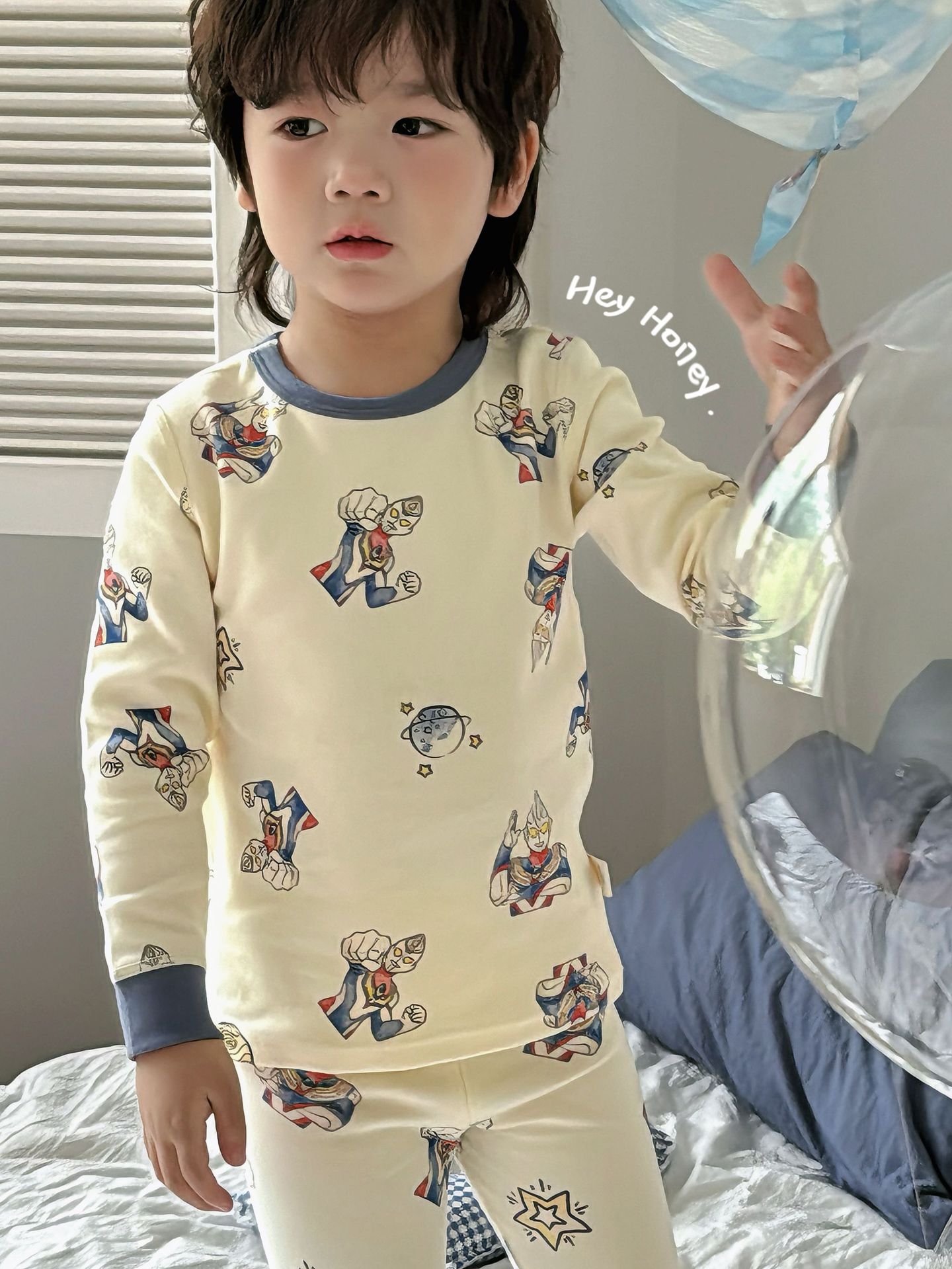 헤이허니 남아 여아용 300g 부드러운 가을옷 세트 아동용 잠옷 홈웨어