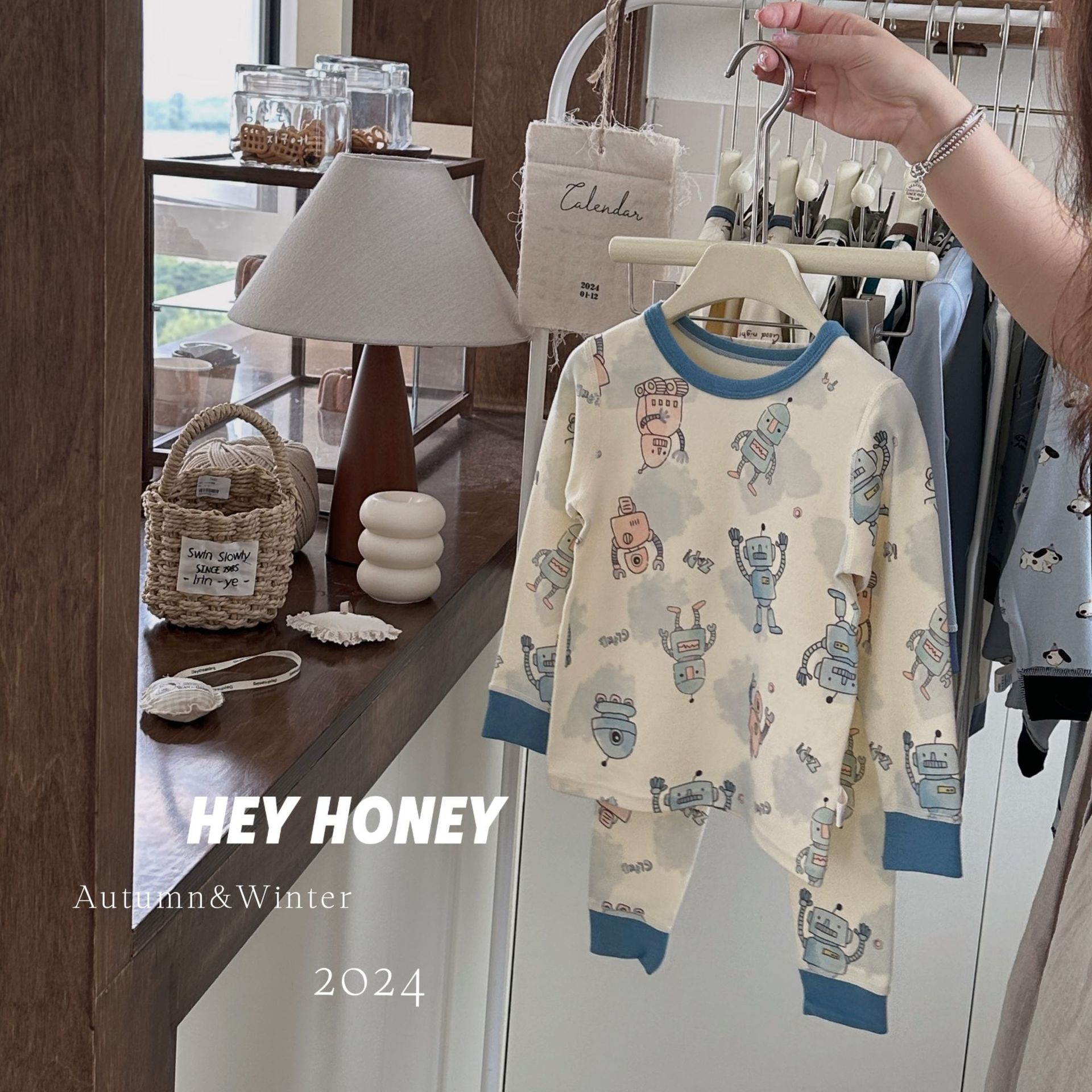 헤이허니 남아 여아용 300g 부드러운 가을옷 세트 아동용 잠옷 홈웨어스토어 가기