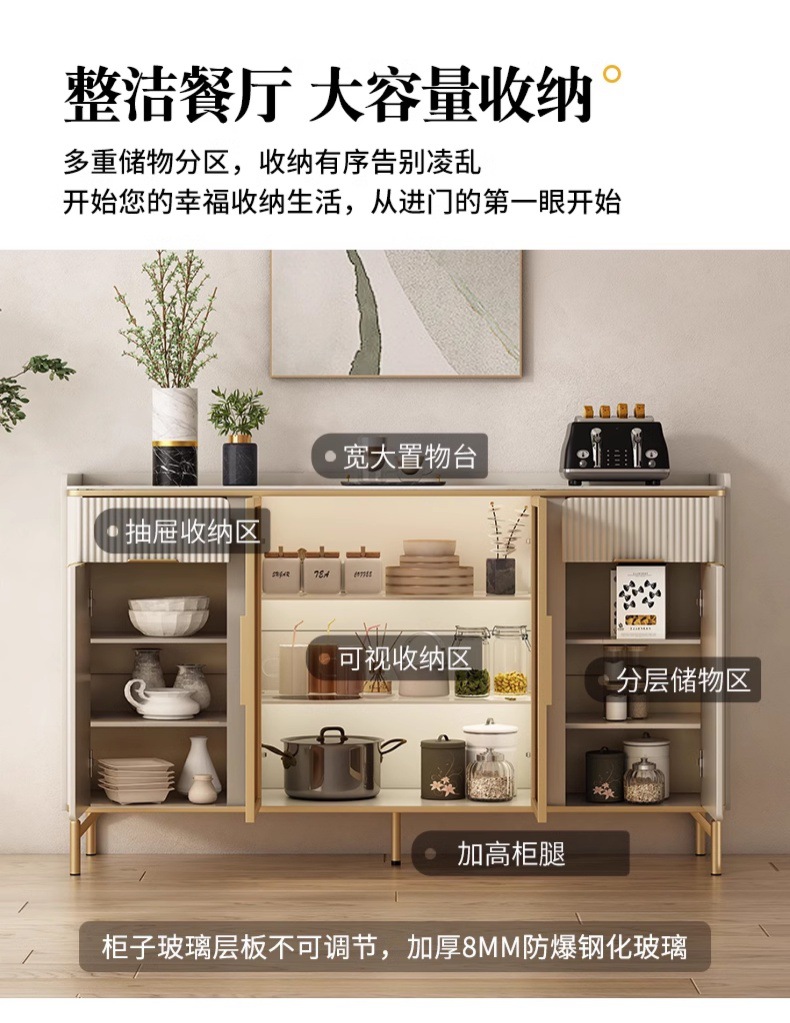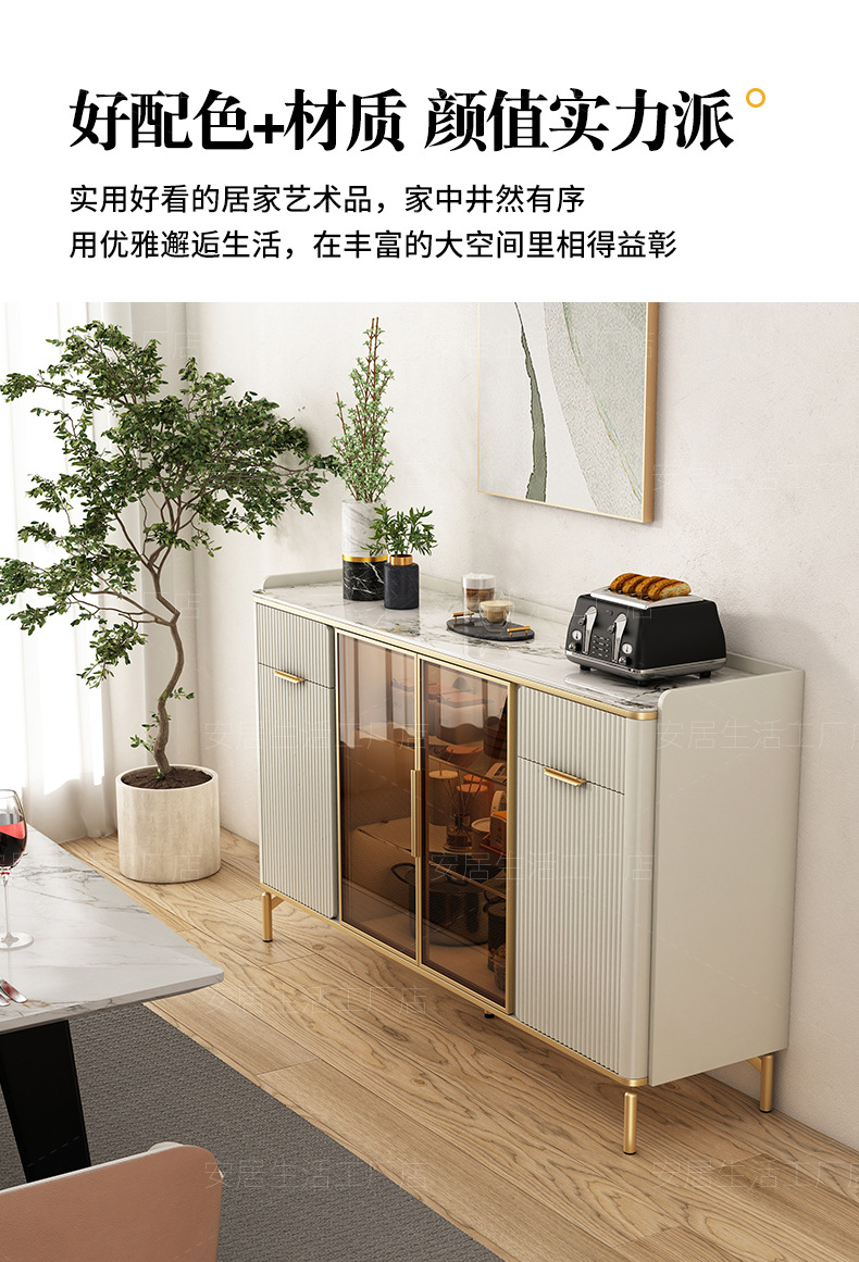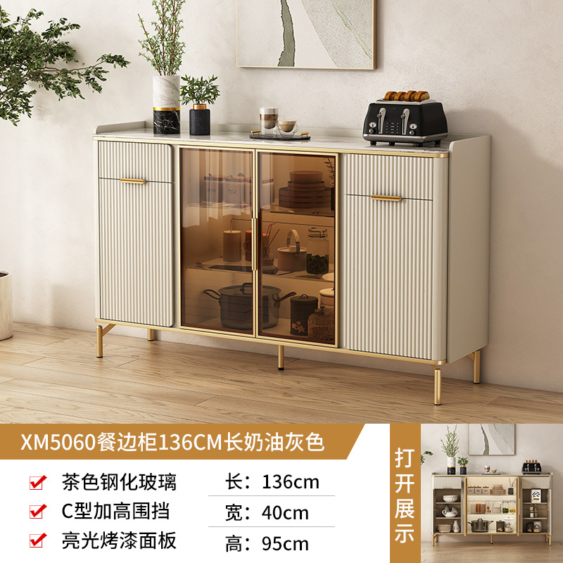 가벼운 럭셔리 사이드 보드 현대 간단한 캐비닛 저장 캐비닛 거실 와인 캐비닛 가정용 벽 저장 차 캐비닛 크림 스타일