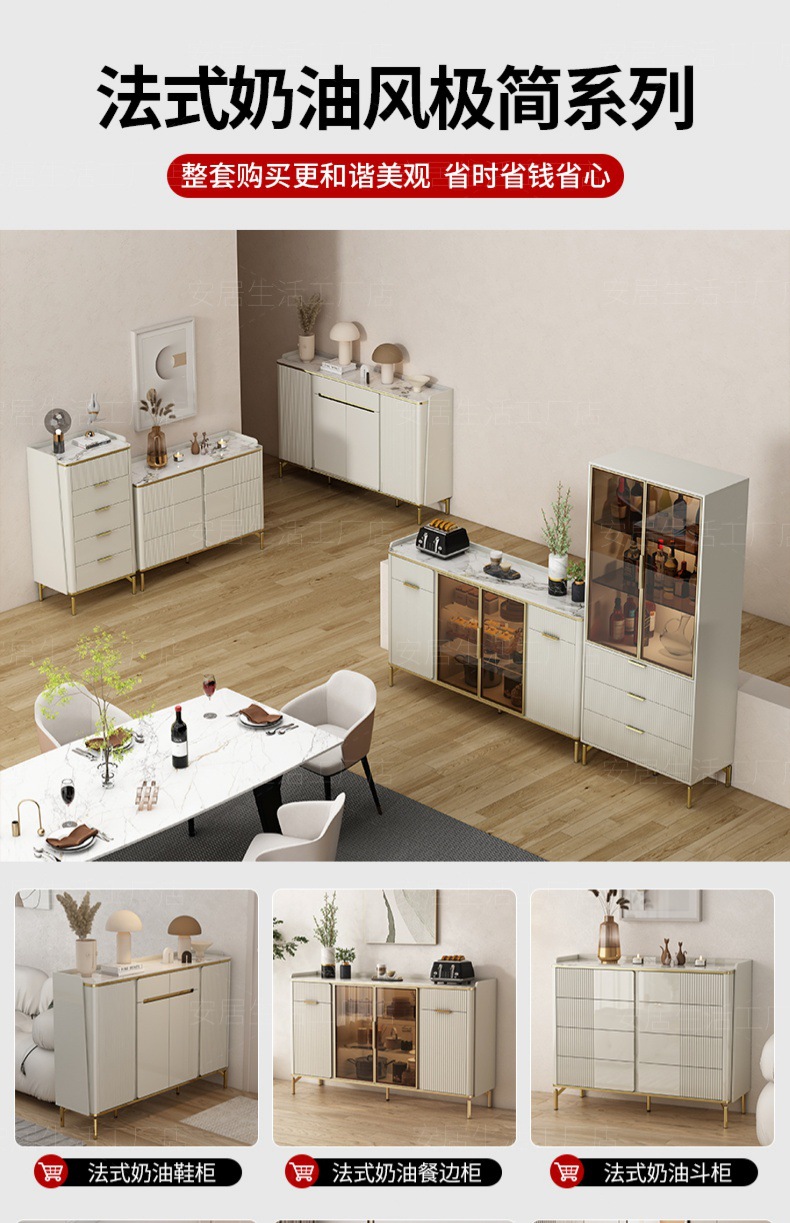 가벼운 럭셔리 사이드 보드 현대 간단한 캐비닛 저장 캐비닛 거실 와인 캐비닛 가정용 벽 저장 차 캐비닛 크림 스타일스토어 가기