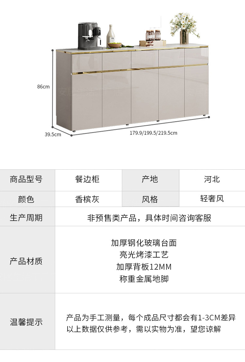 • [광택 도장 샴페인 그레이] 199.5cm 길이의 찬장 무료 패키지