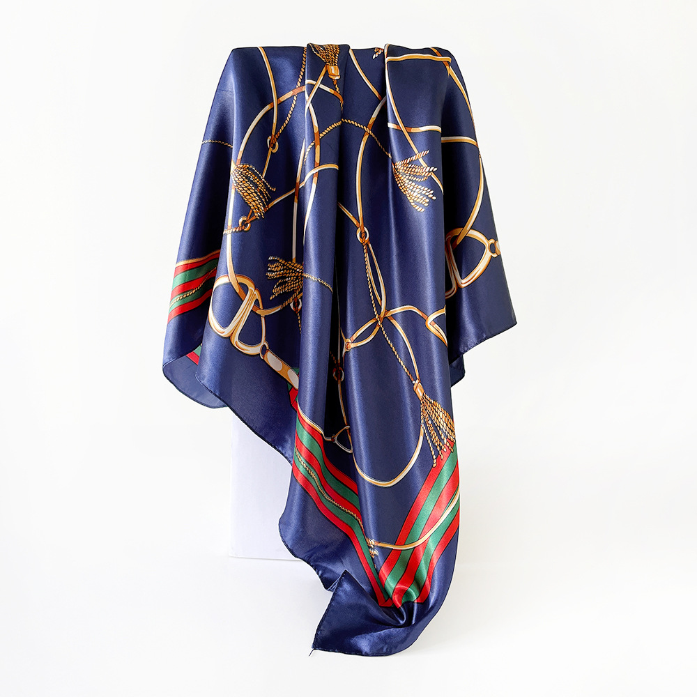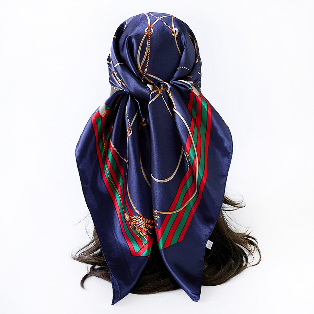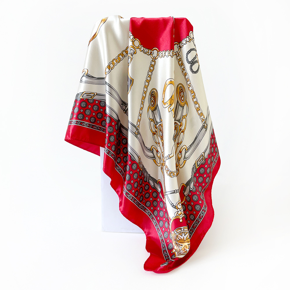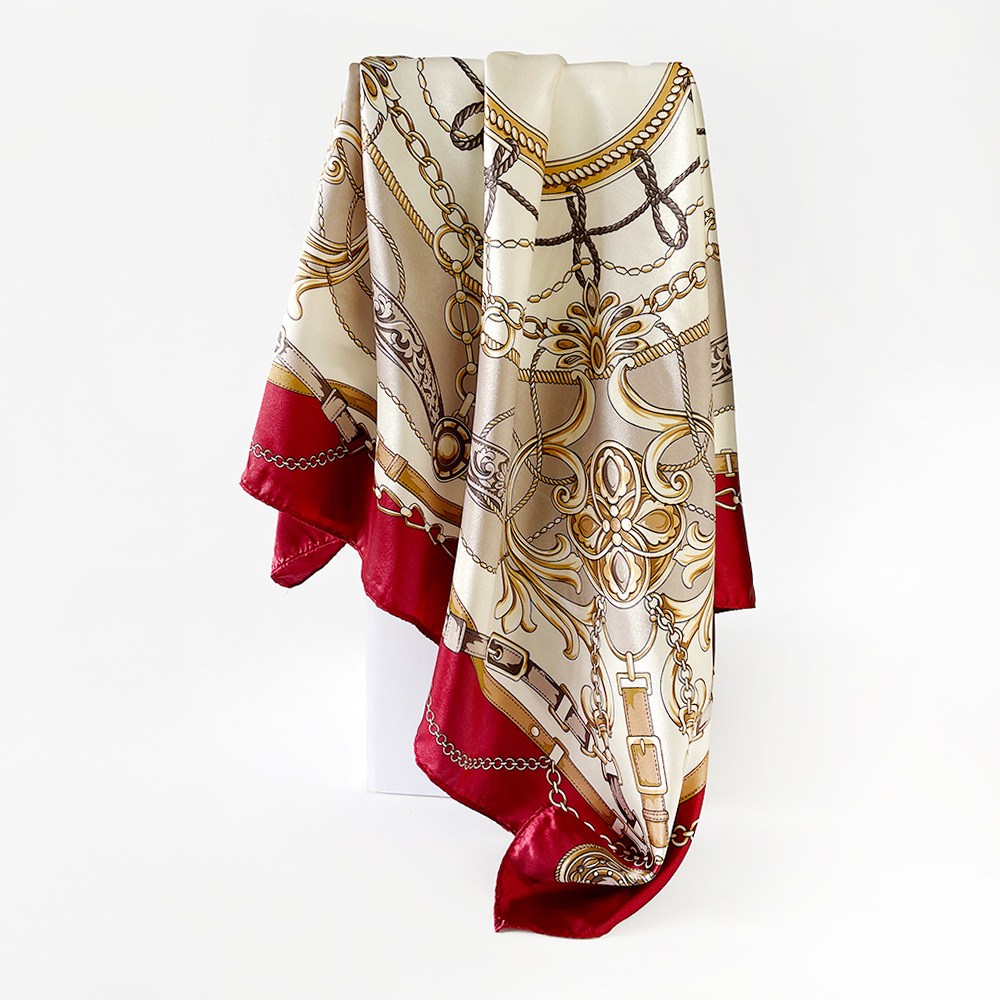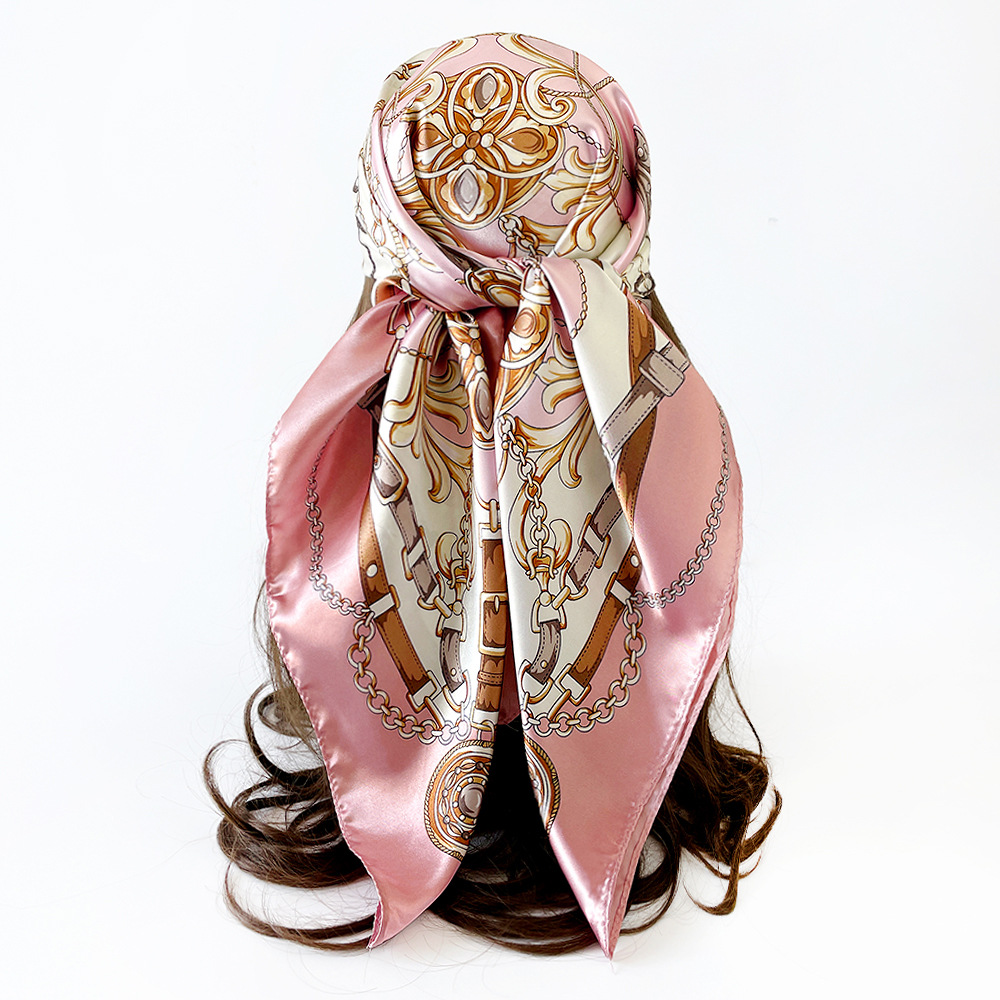 대형 스카프 실크 스카프 신상 다용도 체인 90*90cm 여성 클래식 레트로 프린트 스카프 머리 스카프 도매