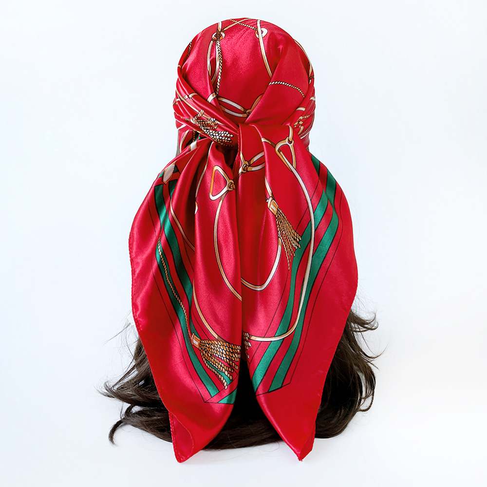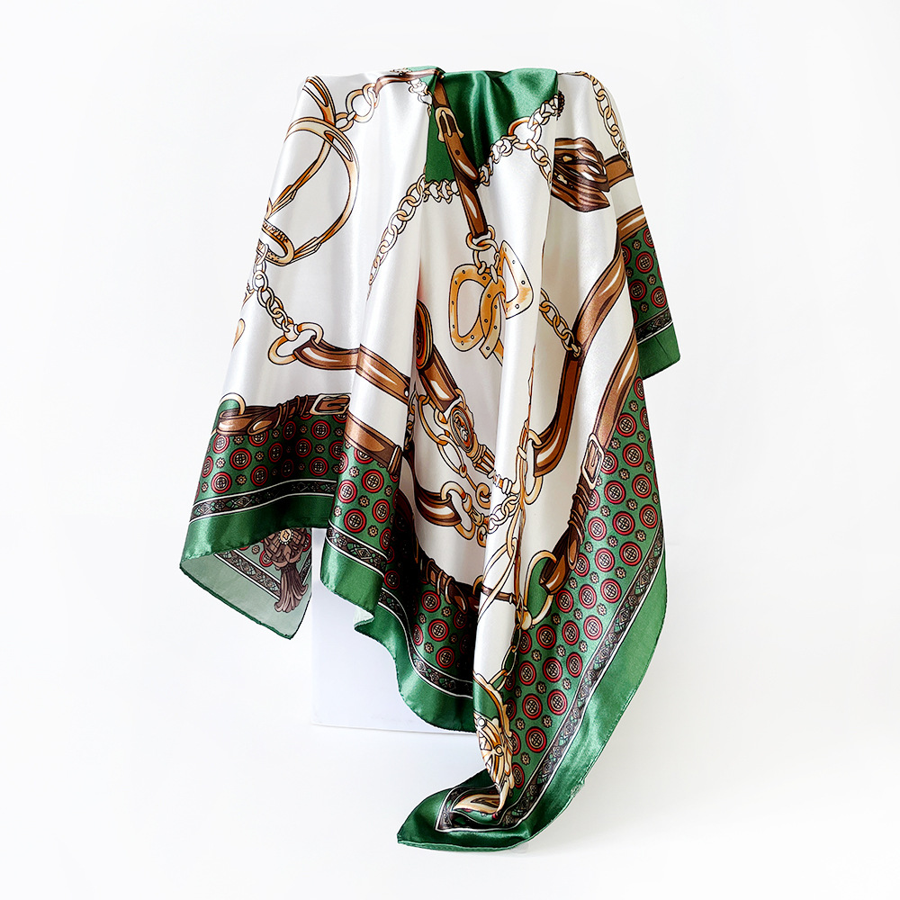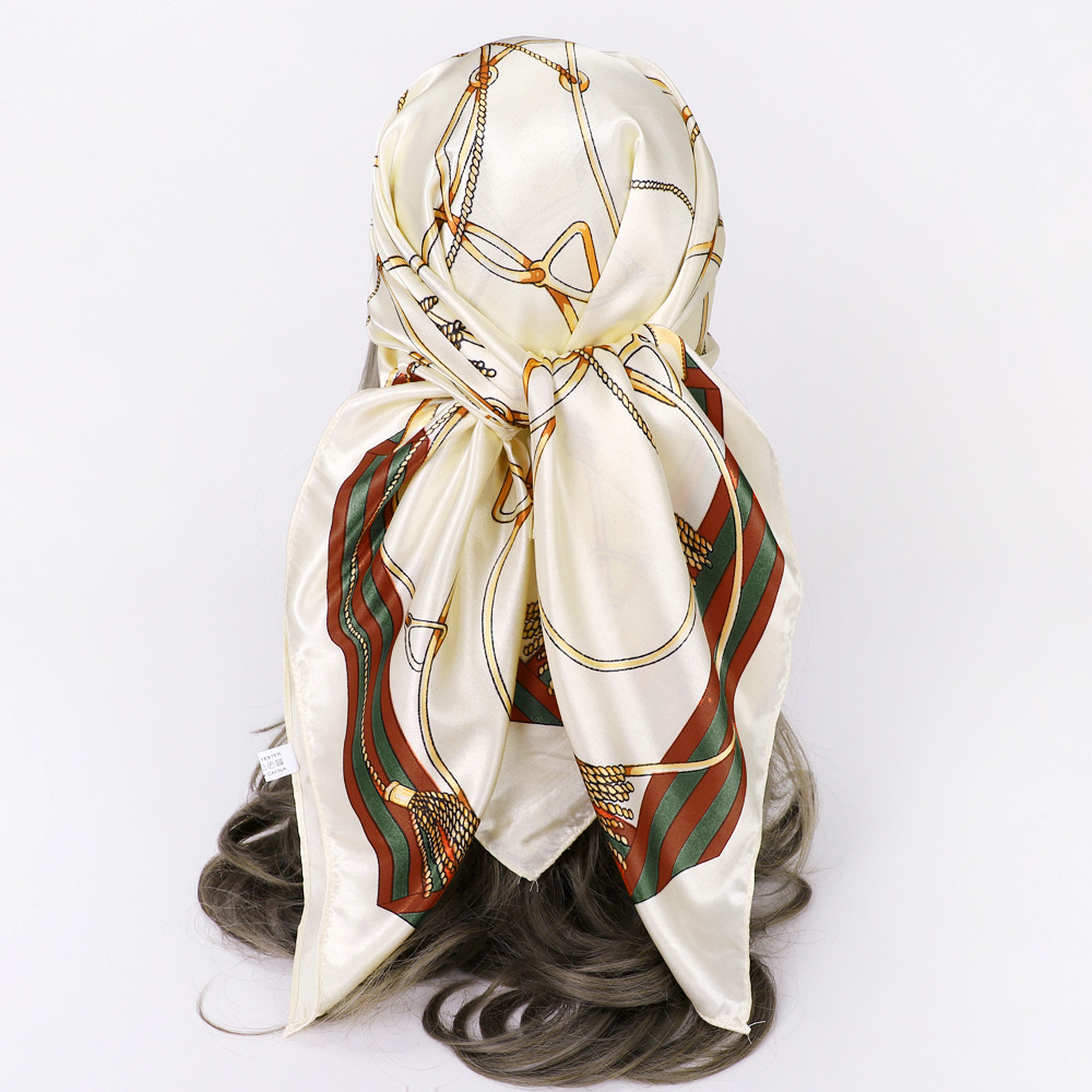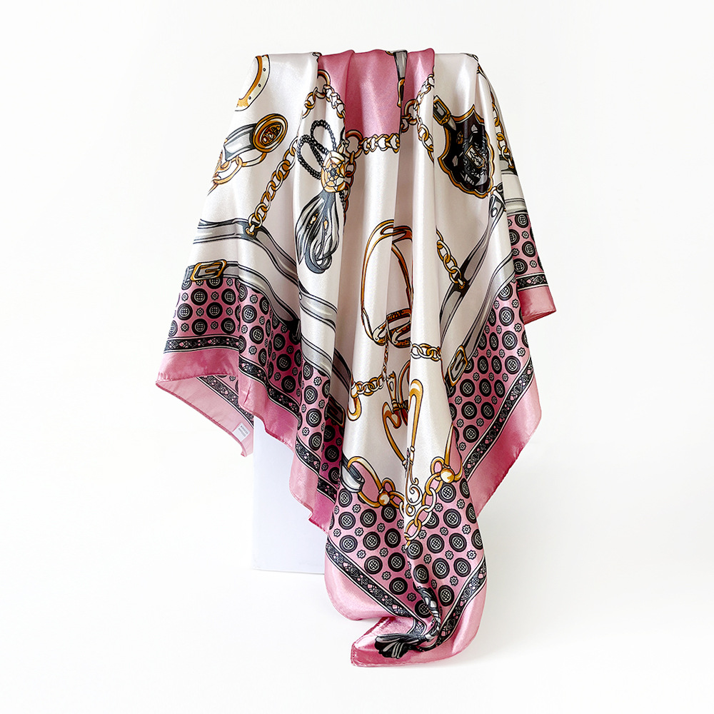 대형 스카프 실크 스카프 신상 다용도 체인 90*90cm 여성 클래식 레트로 프린트 스카프 머리 스카프 도매