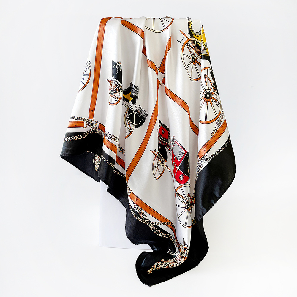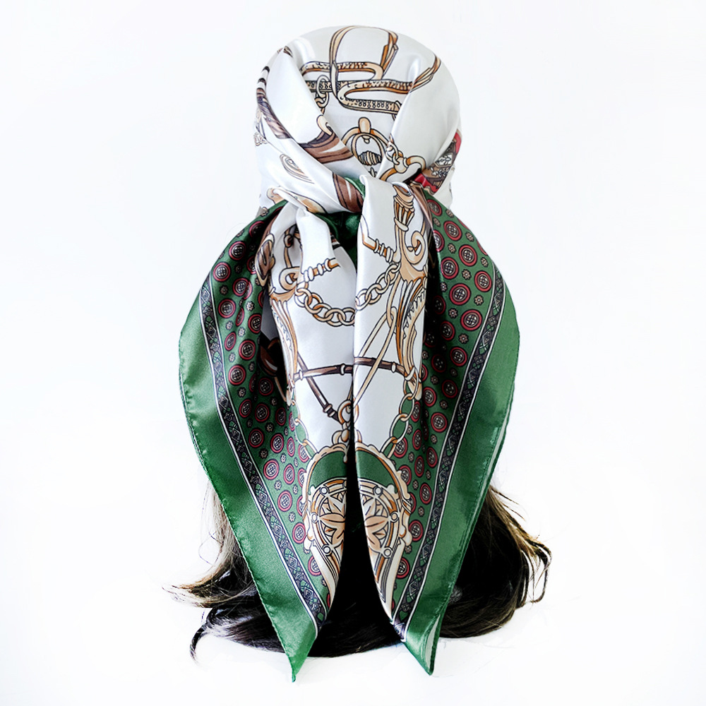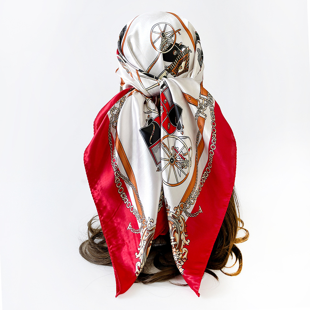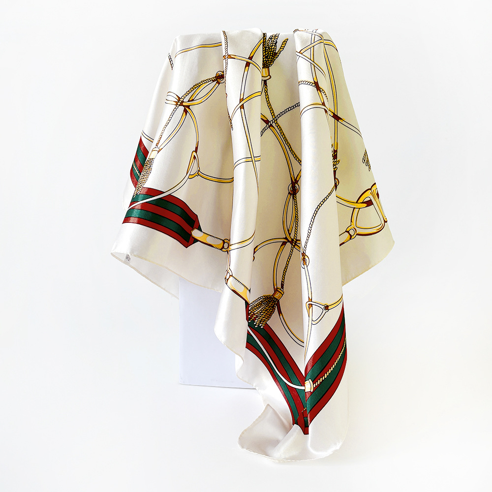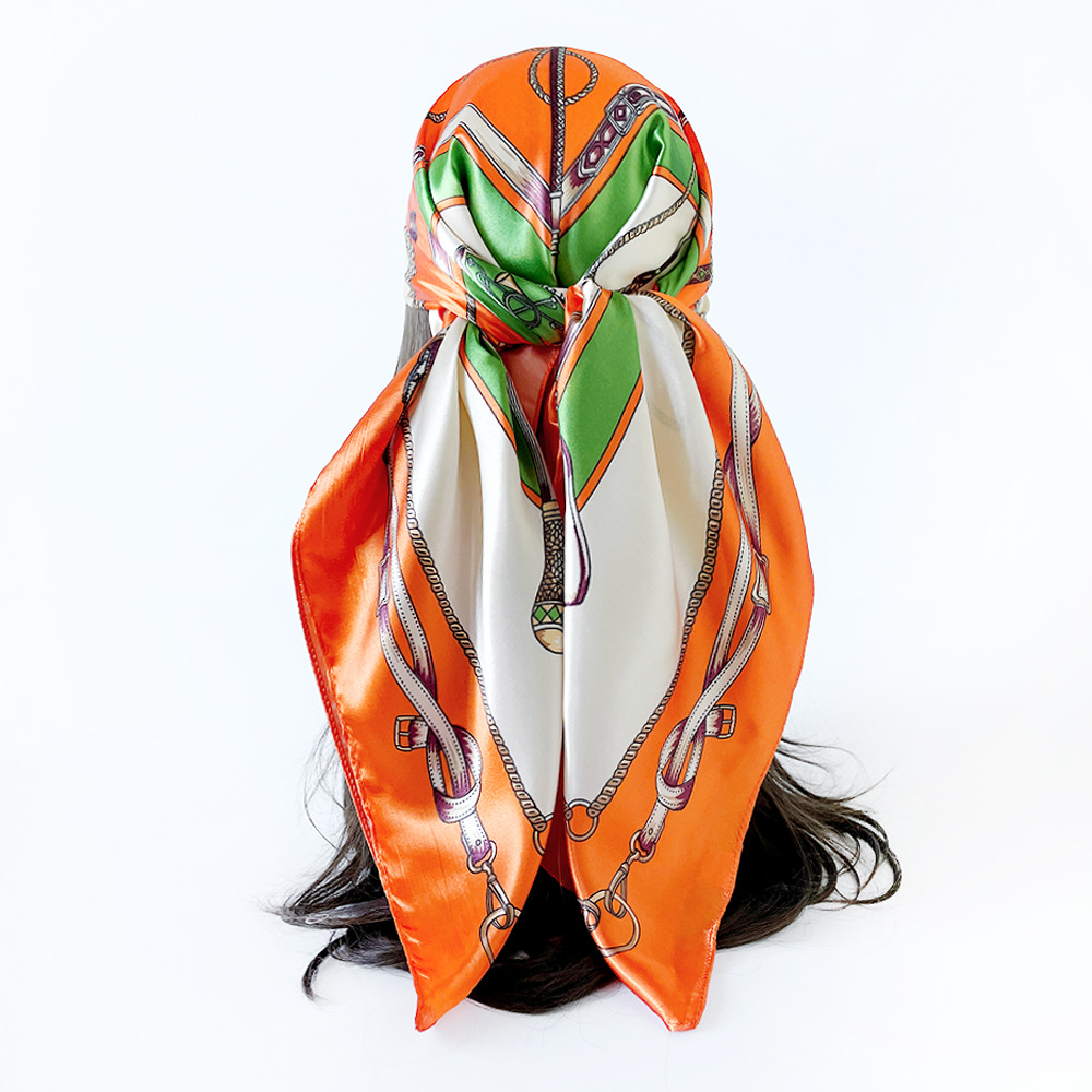 대형 스카프 실크 스카프 신상 다용도 체인 90*90cm 여성 클래식 레트로 프린트 스카프 머리 스카프 도매