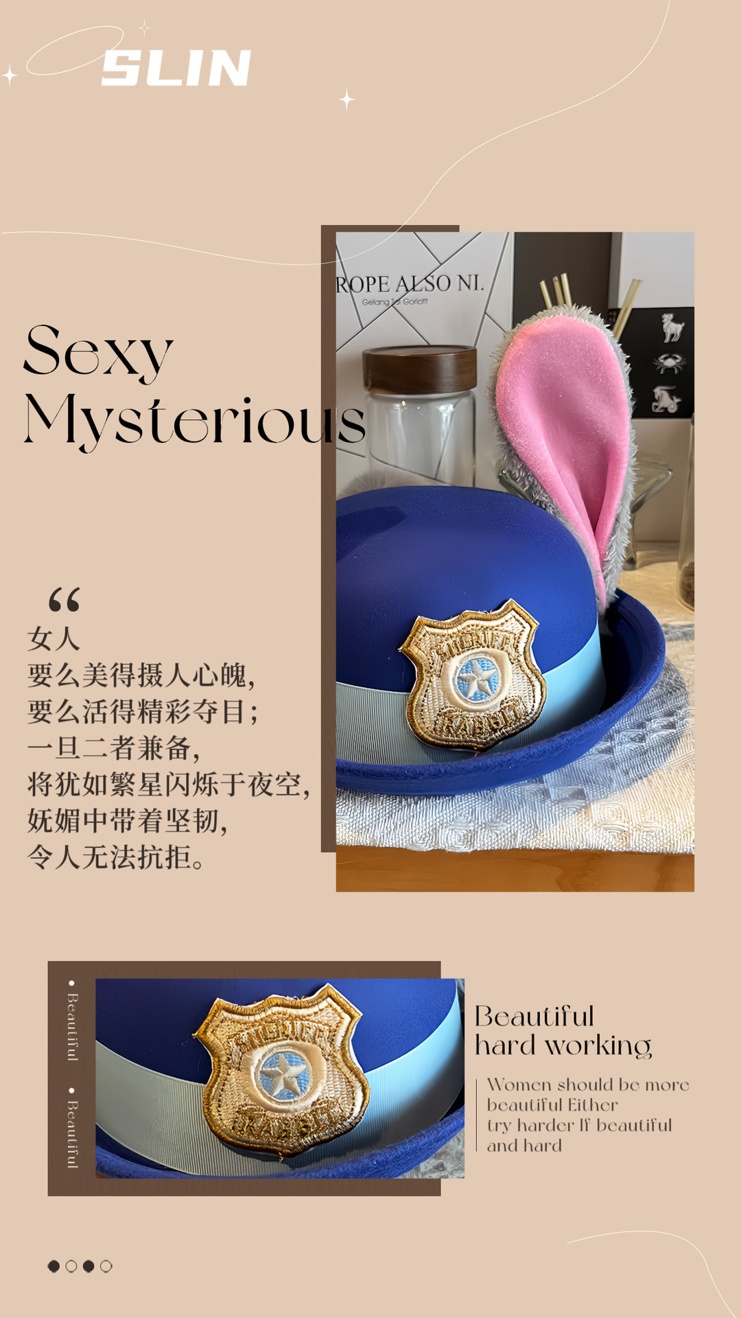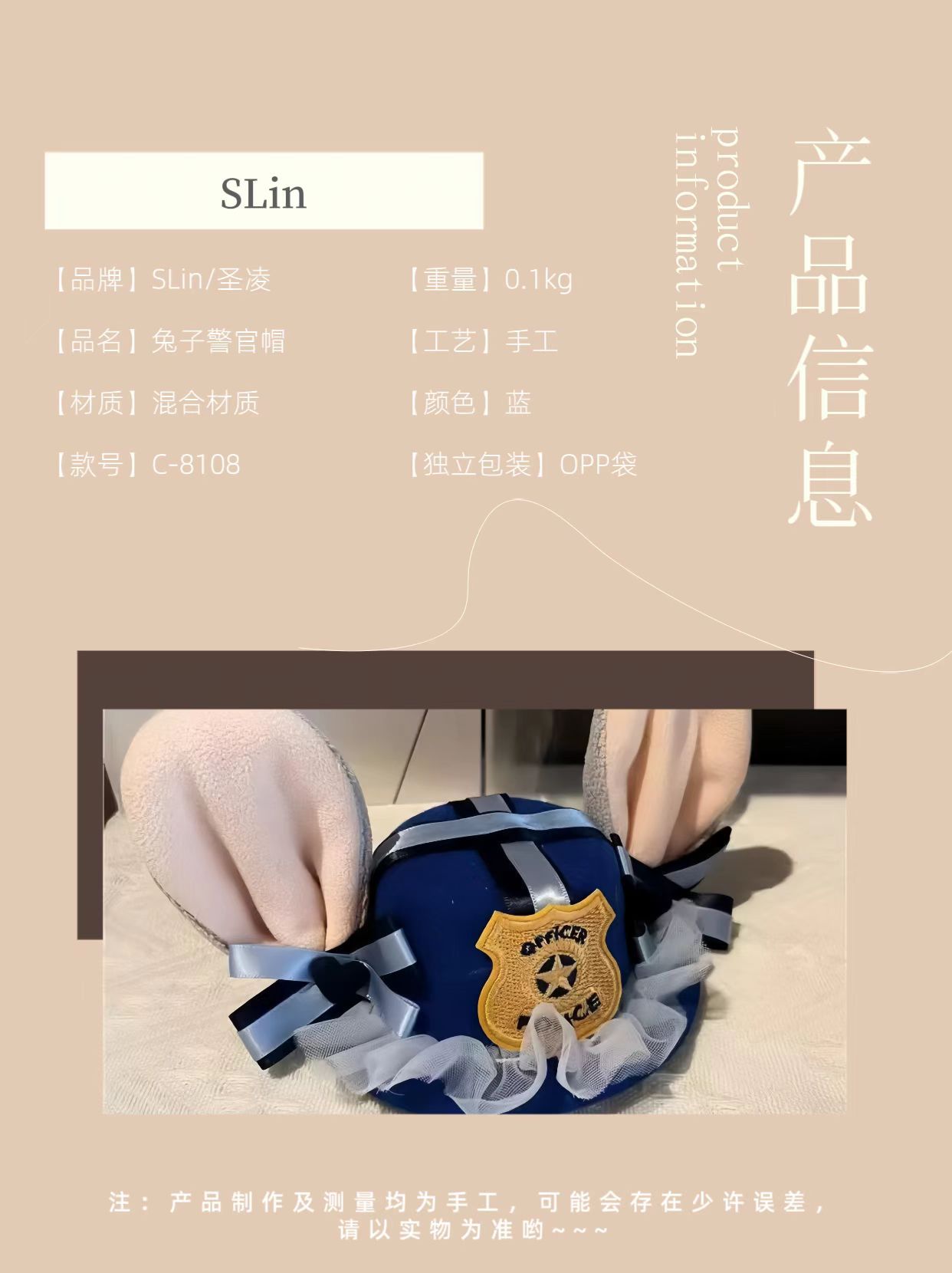 朱迪兔子圆顶儿童礼帽疯狂动物城兔子警官帽子成人发饰头饰遮阳帽