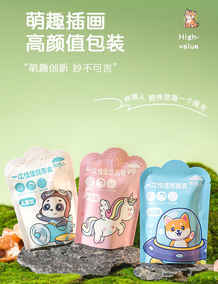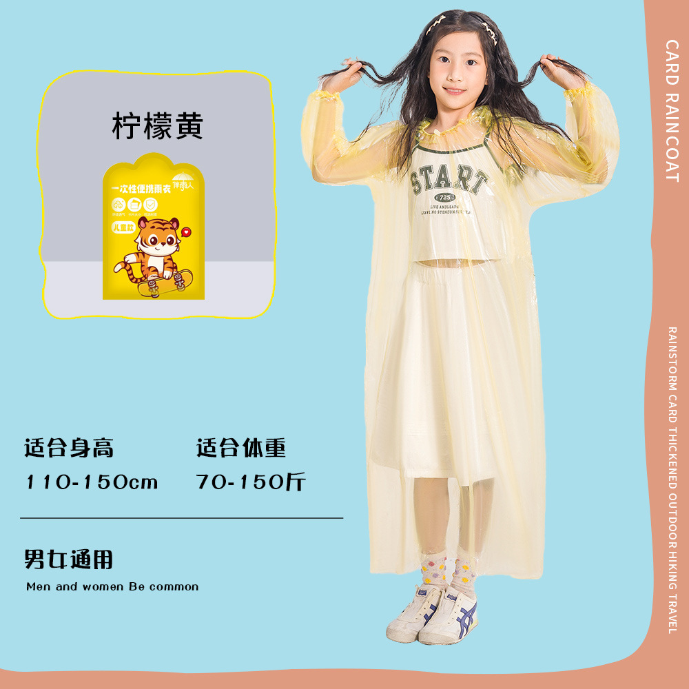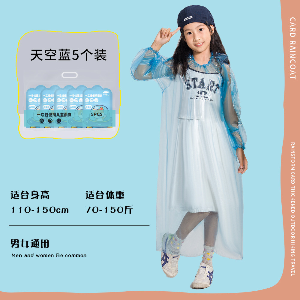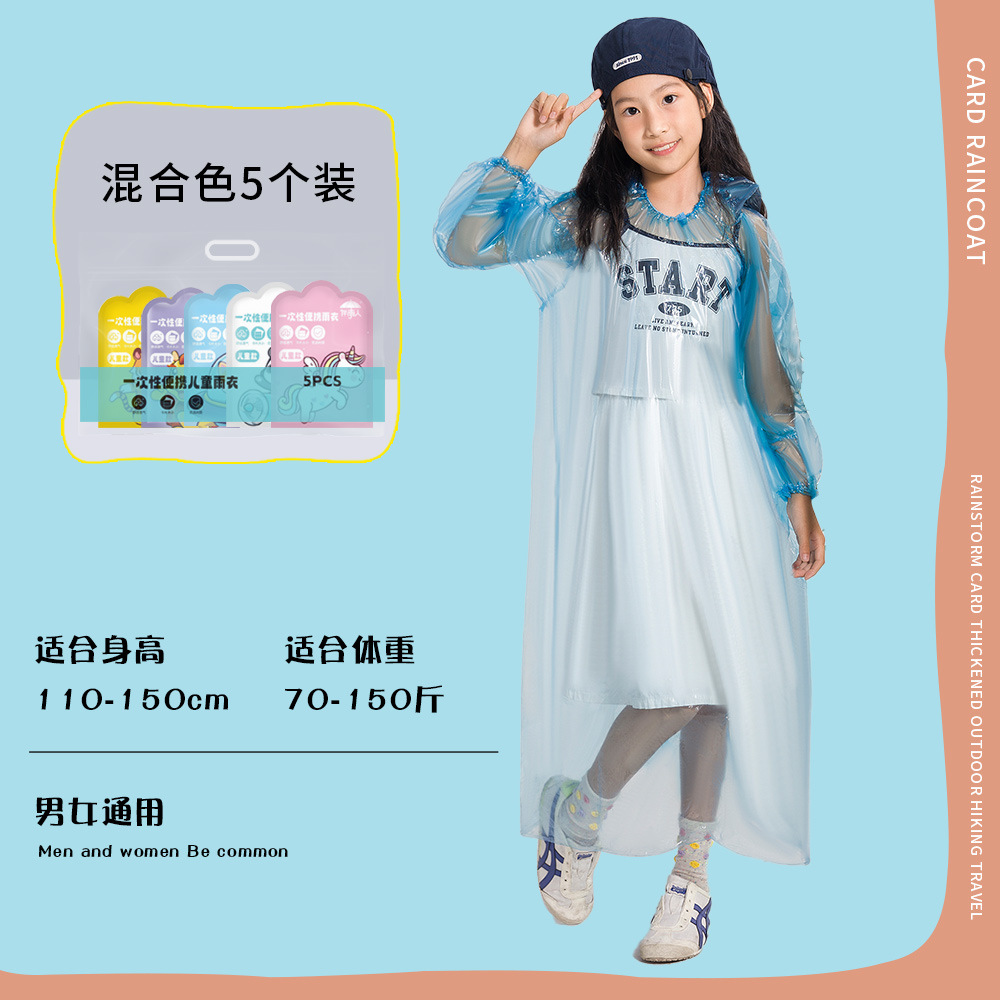 초등학생을 위해 두꺼운 어린이 일회용 비옷 카드 휴대용 전신 방수 아기 성인 판초