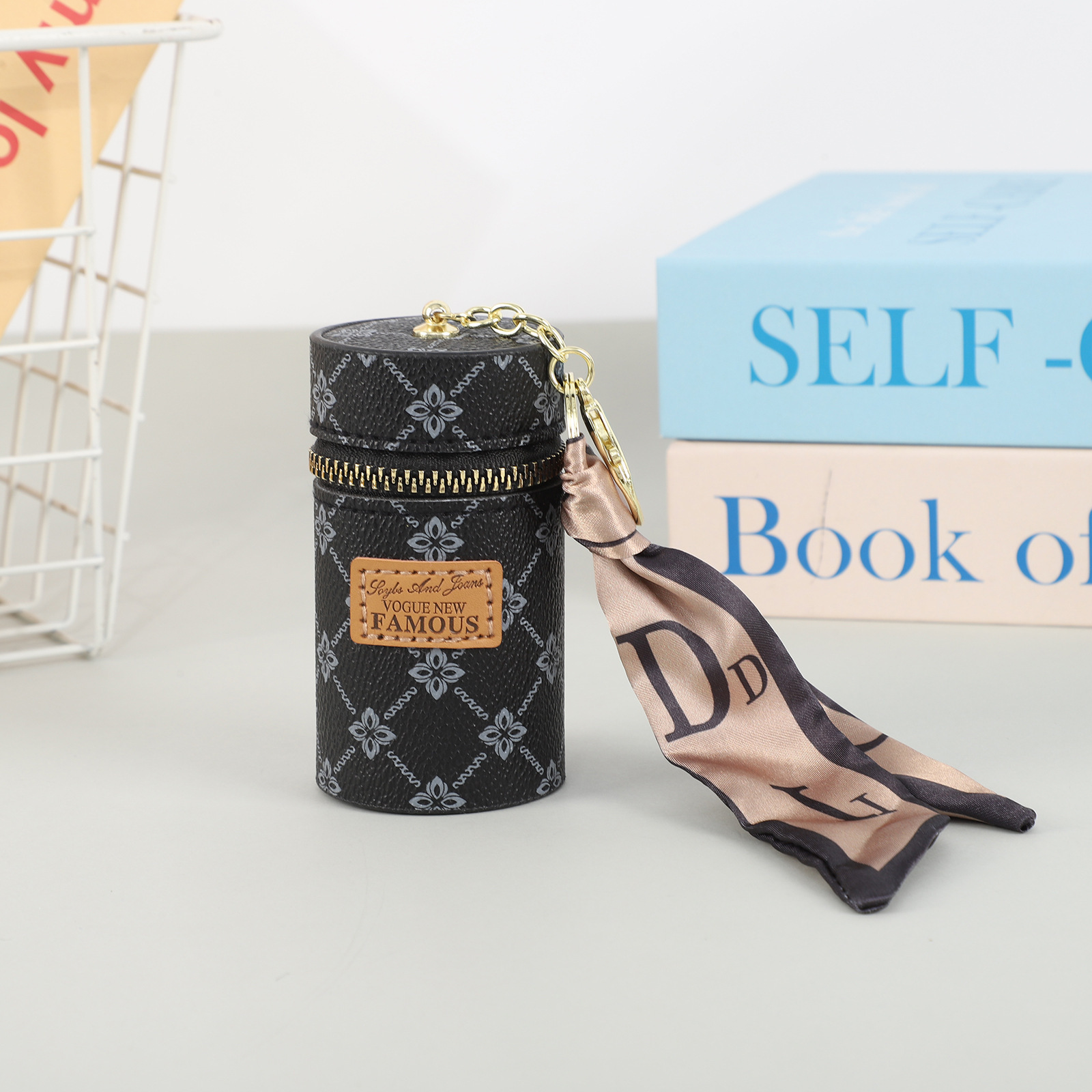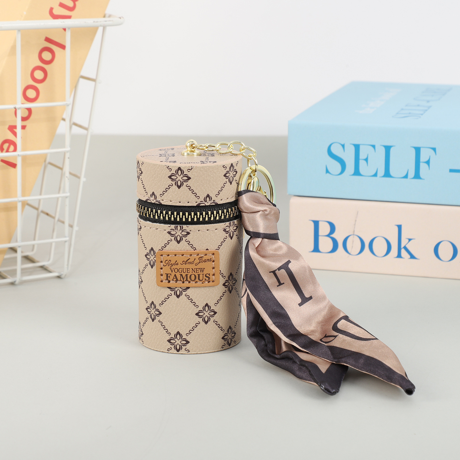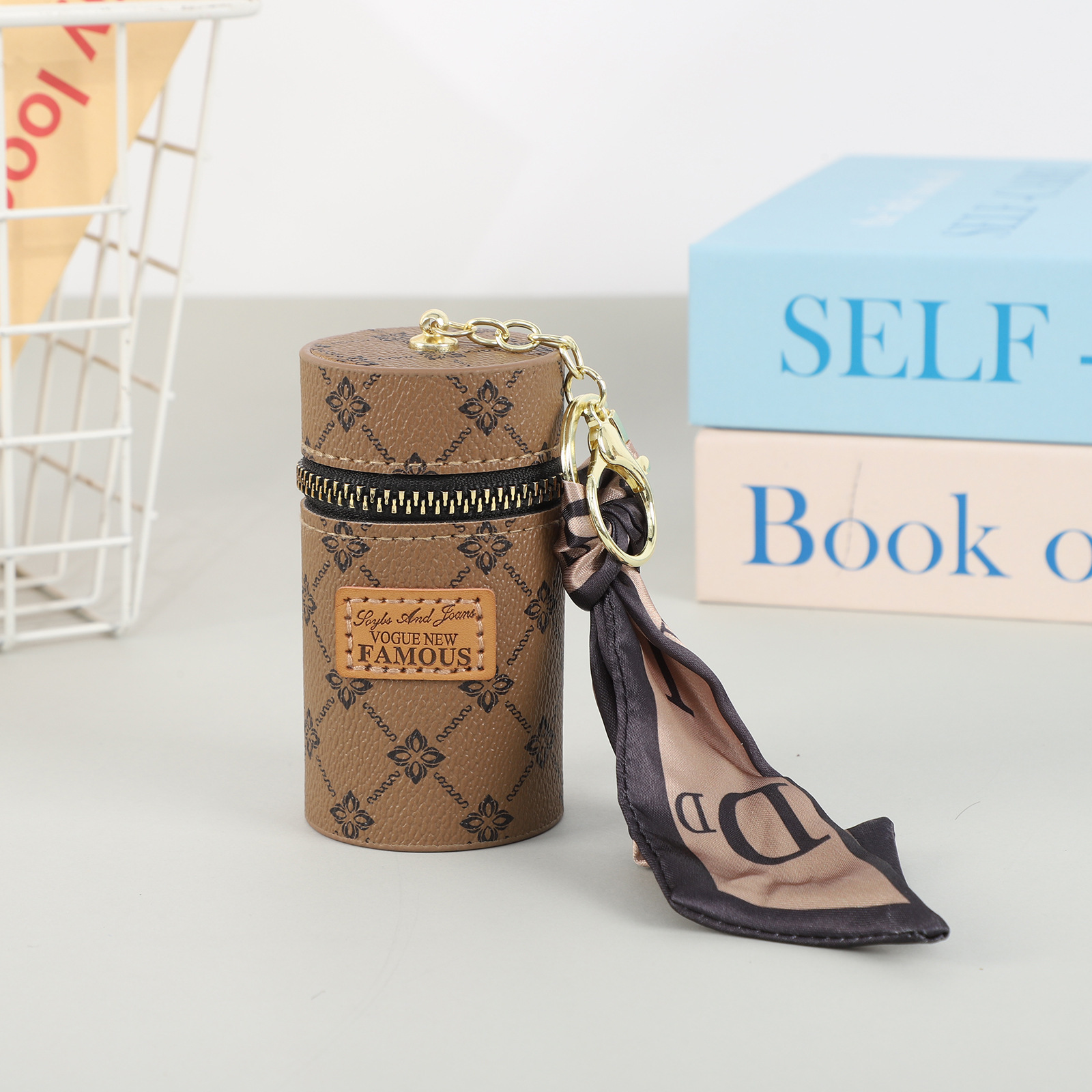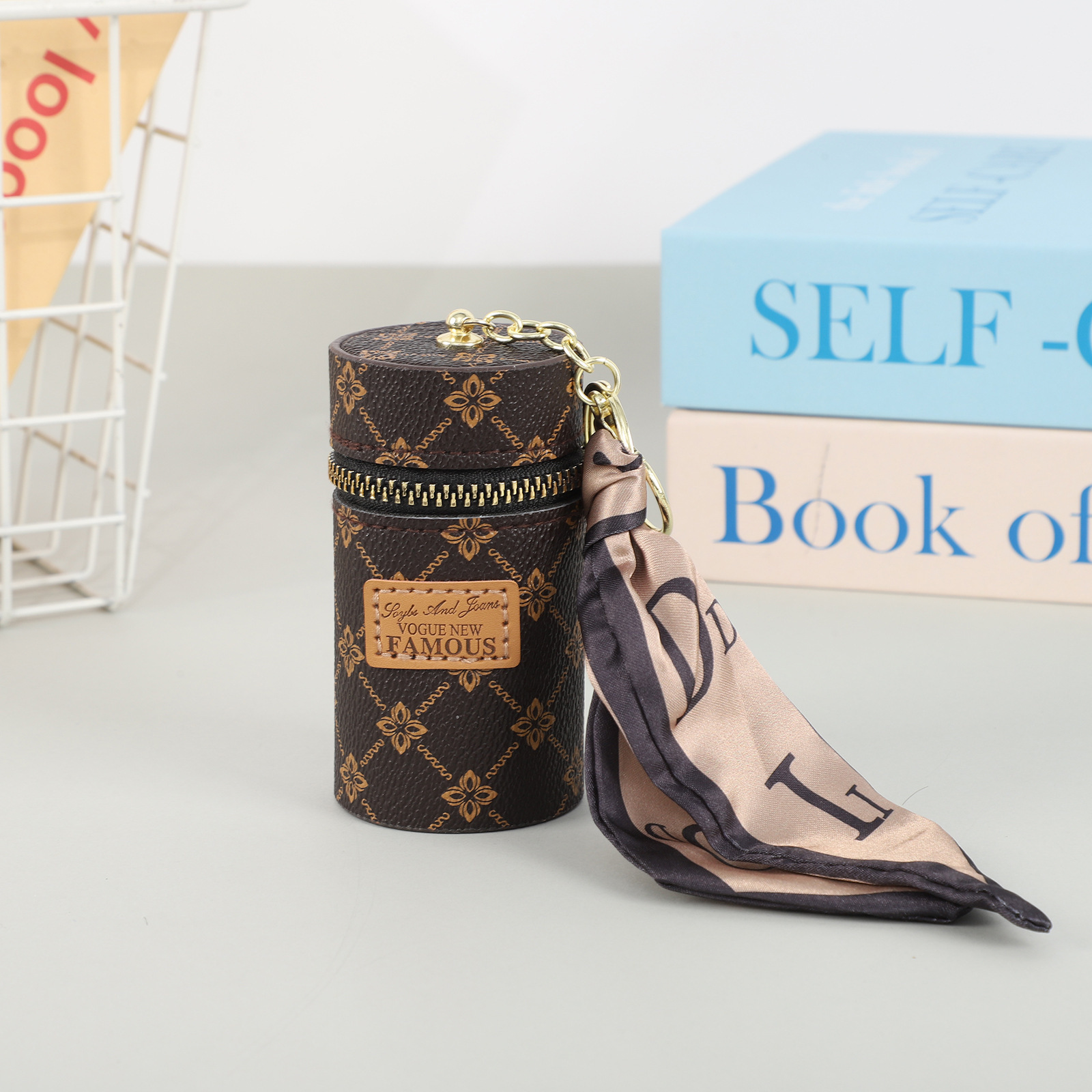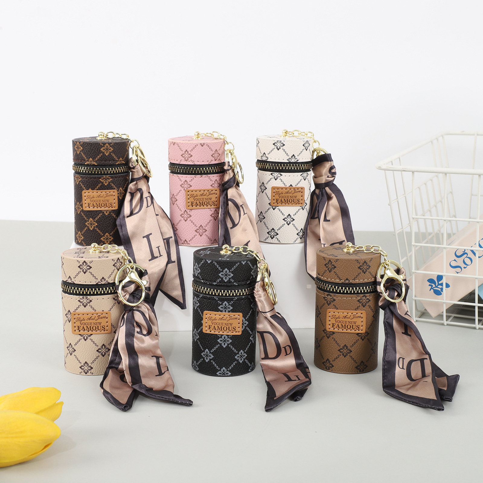 창조적 인 가죽 오래 된 꽃 양동이 동전 지갑 빈티지 인쇄 미니 립스틱 키 저장 가방 자동차 키 펜던트