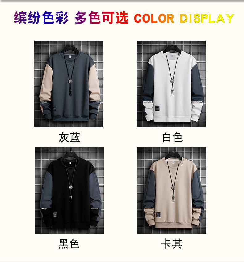 트렌디 한 브랜드 스웨트 셔츠 남자 스티칭 라운드 넥 봄과 가을 남자 한국 스타일 슬림 핏 청소년 캐주얼 올 매치 독특한 탑 재킷