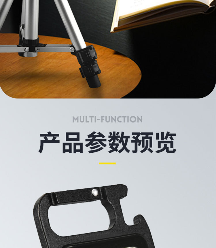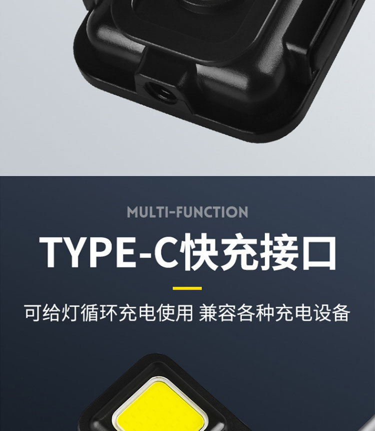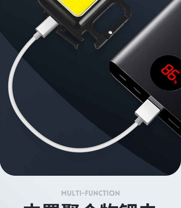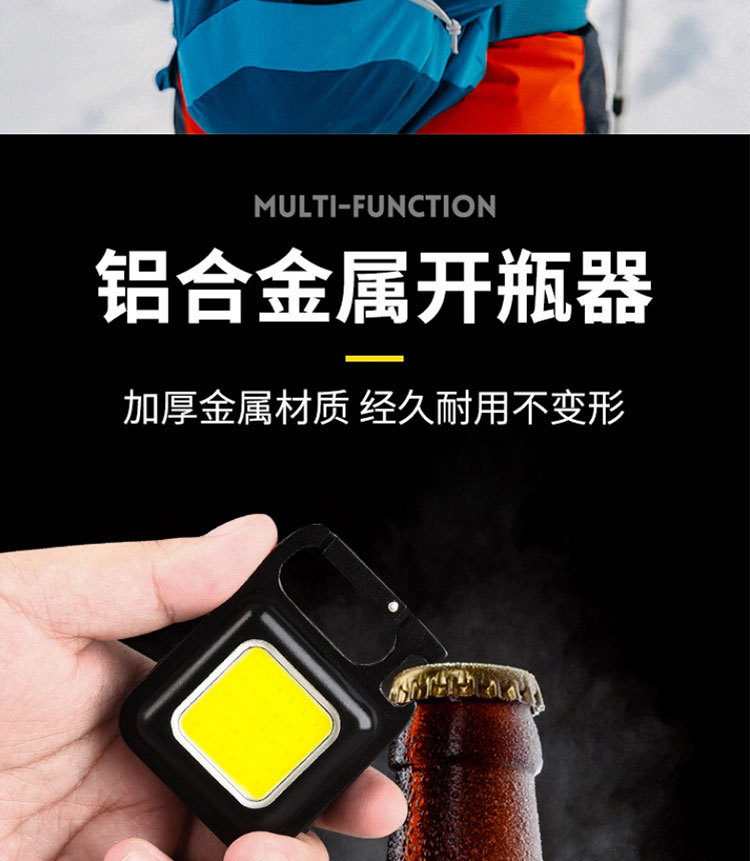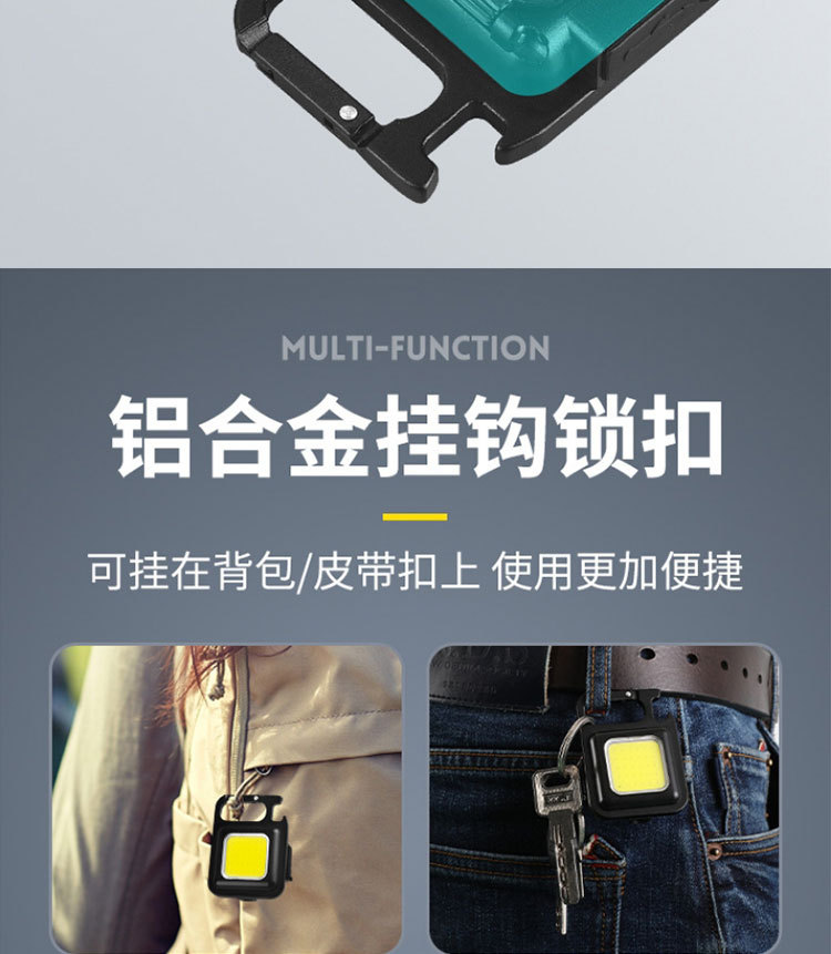 다기능 COB 작은 사각형 램프 자석 미니 야외 비상 손전등 알루미늄 합금 키 체인 충전식 작업 조명