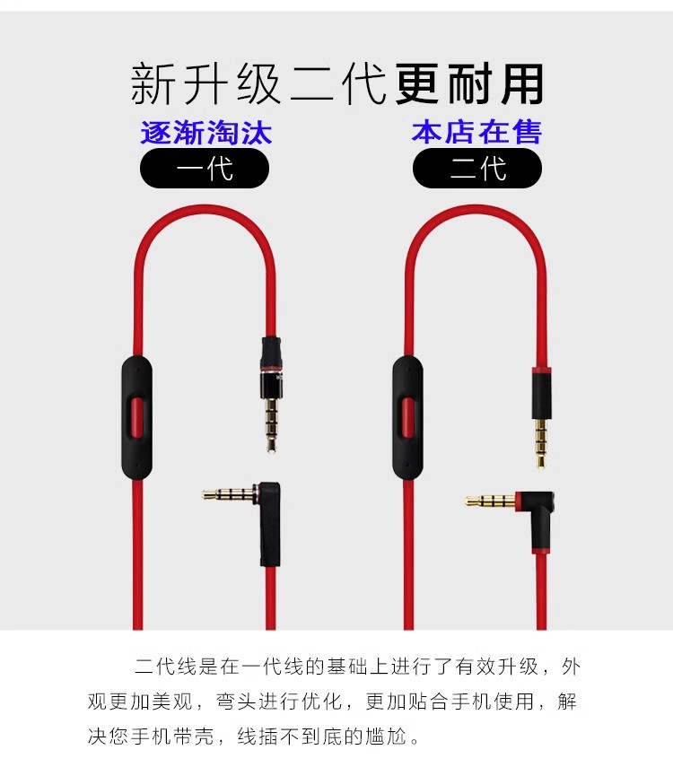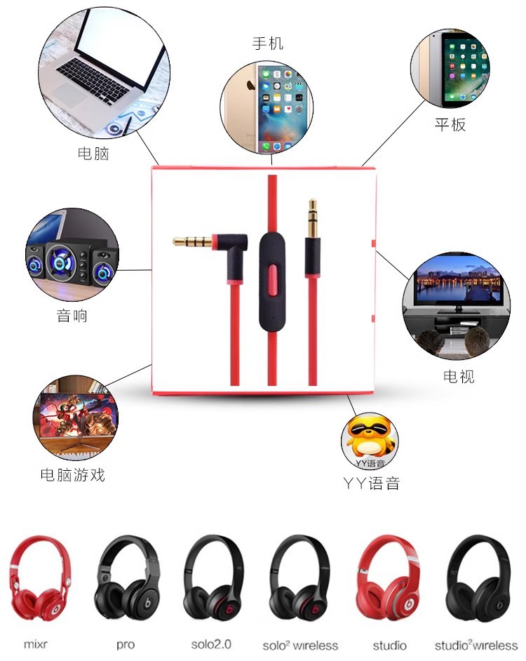 适用beats Solo2 Solo3 studio2/3 Mixr 录音师Pro耳机音频线带麦