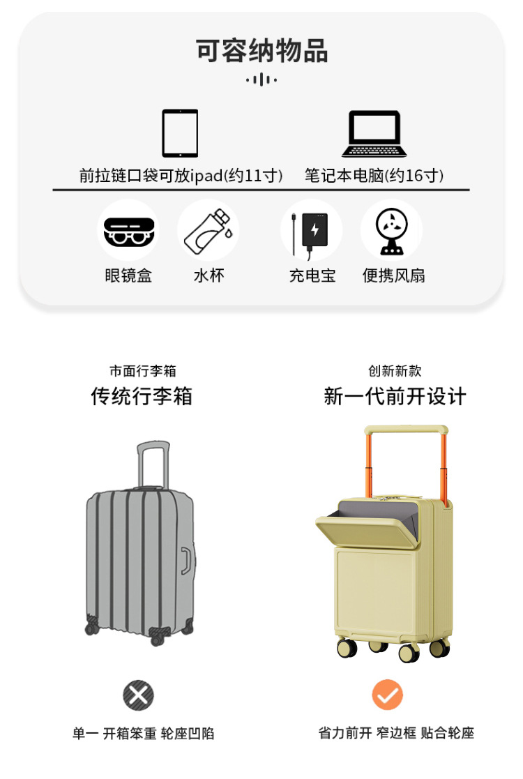전면 개방 가방 여성 20 인치 탑승 상자 새로운 와이드 풀로드 암호 상자 24 인치 음소거 가방 남성 공장스토어 가기