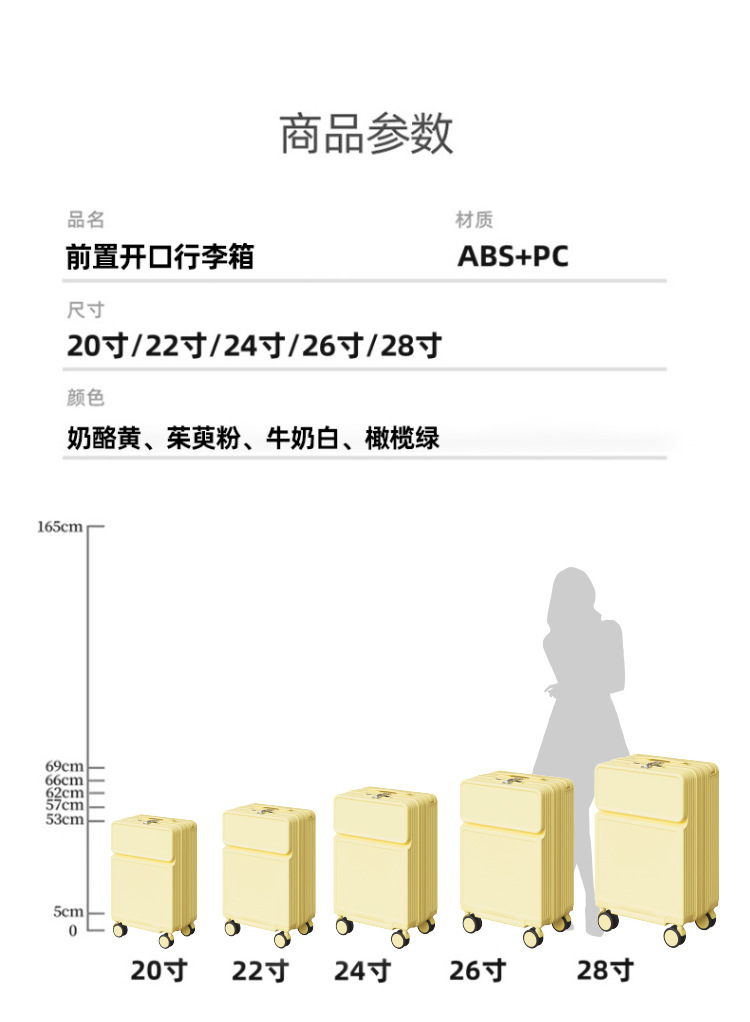 전면 개방 가방 여성 20 인치 탑승 상자 새로운 와이드 풀로드 암호 상자 24 인치 음소거 가방 남성 공장