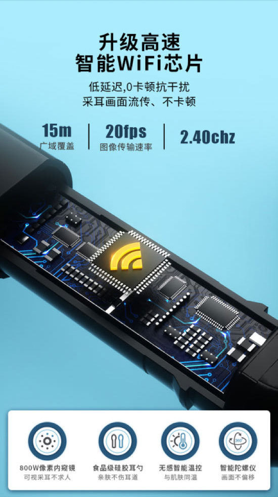 시각적 귀 파기 숟가락 HD 발광 통합 숟가락 귀도 청소 시각적 귀 따기 인공물 충전 WIFI 연결스토어 가기