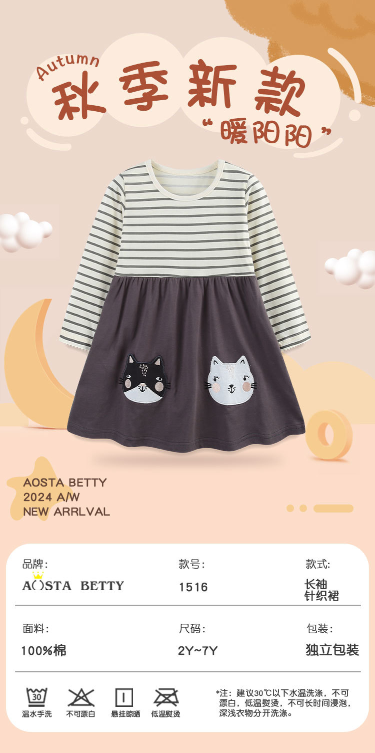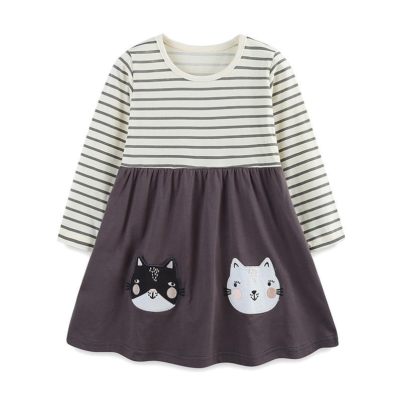 가을 새로운 소녀 긴 소매 원피스 유럽과 미국 스타일 자수 그림 공주 원피스 패션 둥근 목 어린이 치마