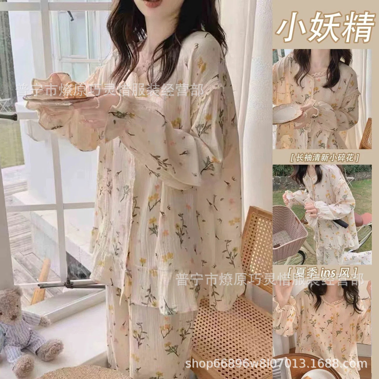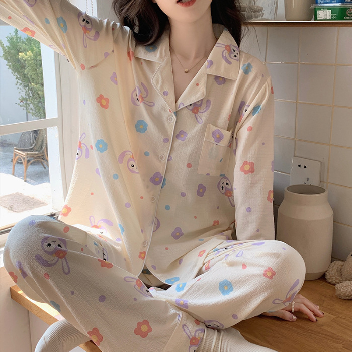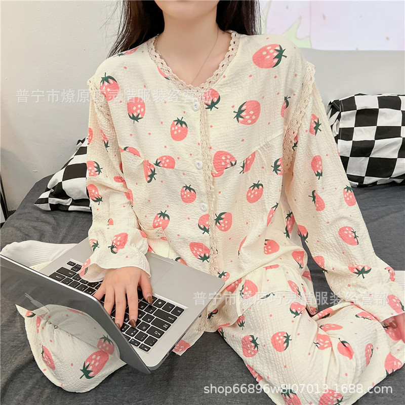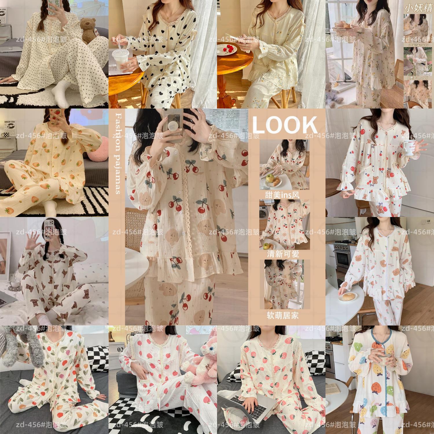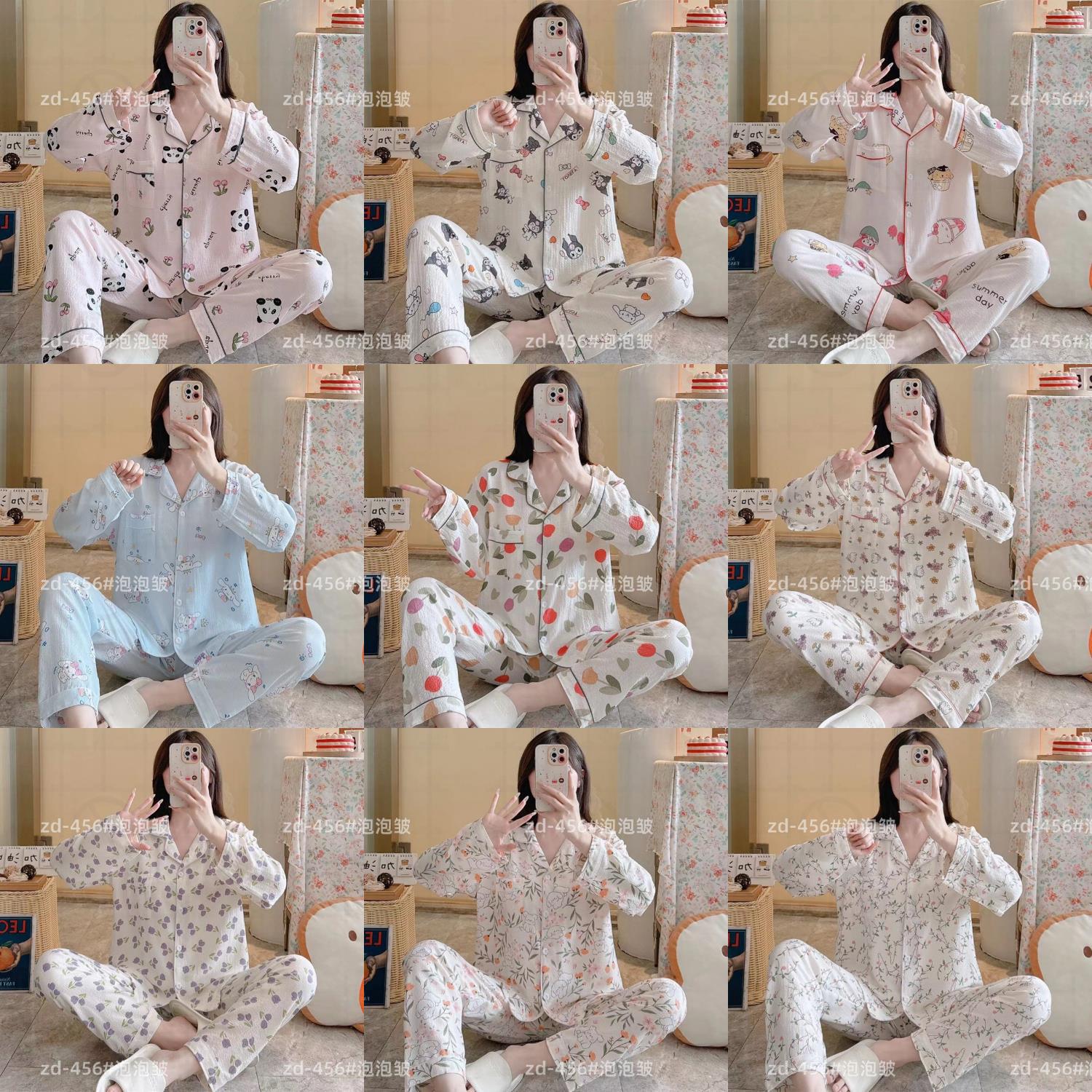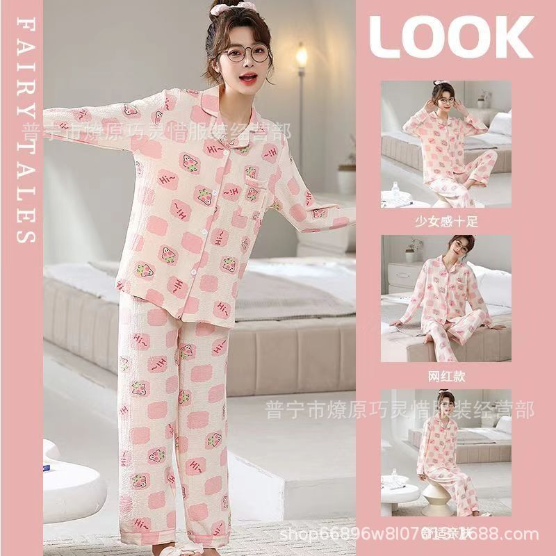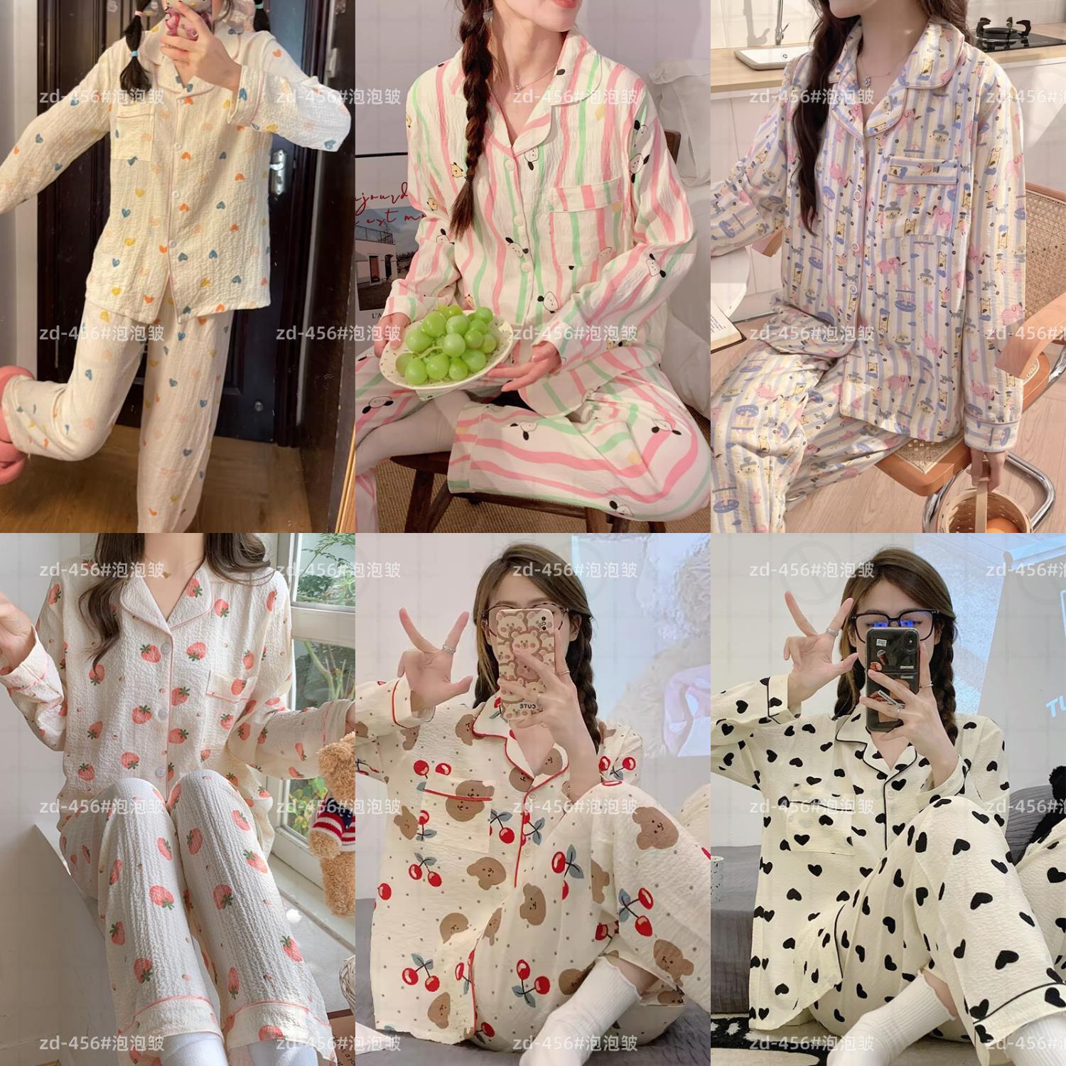 잠옷 여성의 봄과 가을 짠 폼 코튼 주름 긴 소매 만화 공주 스타일 의상 홈 의류 세트스토어 가기