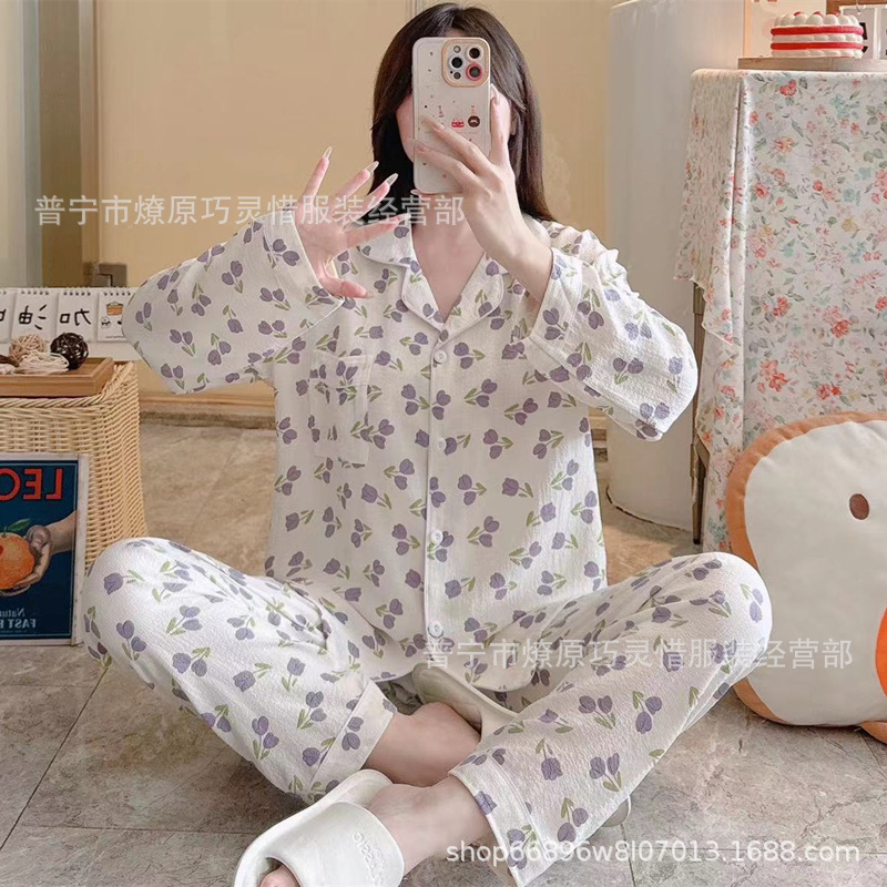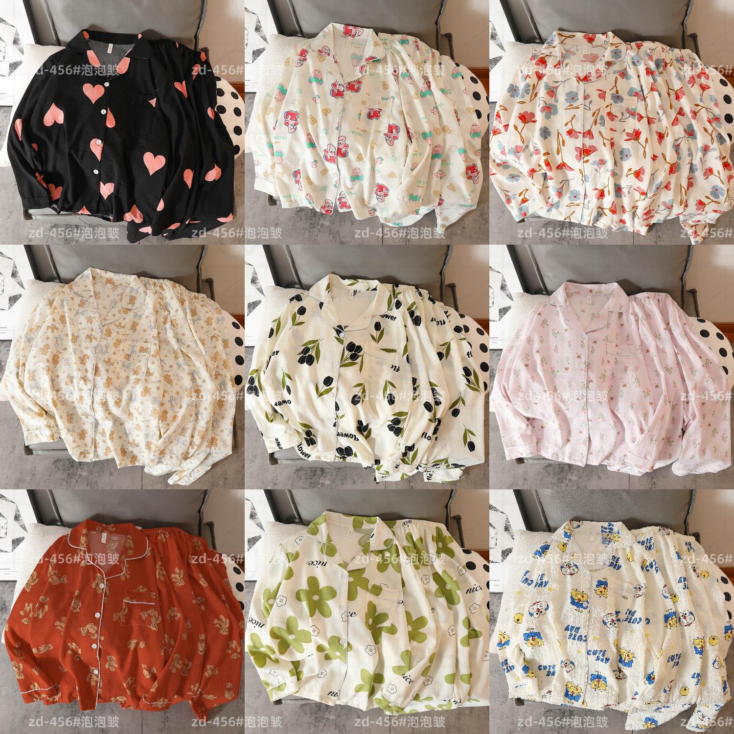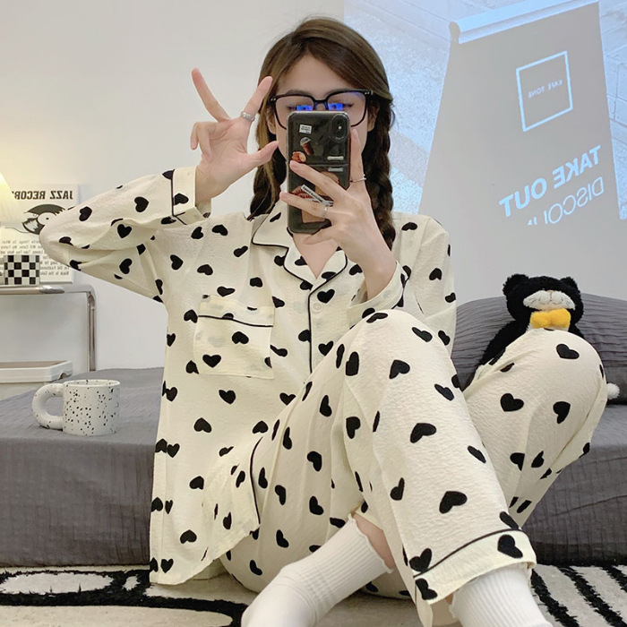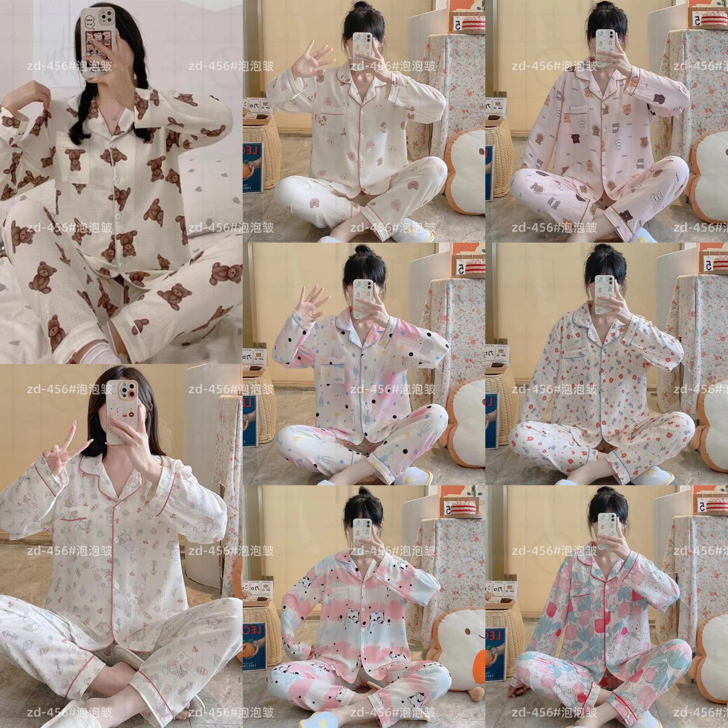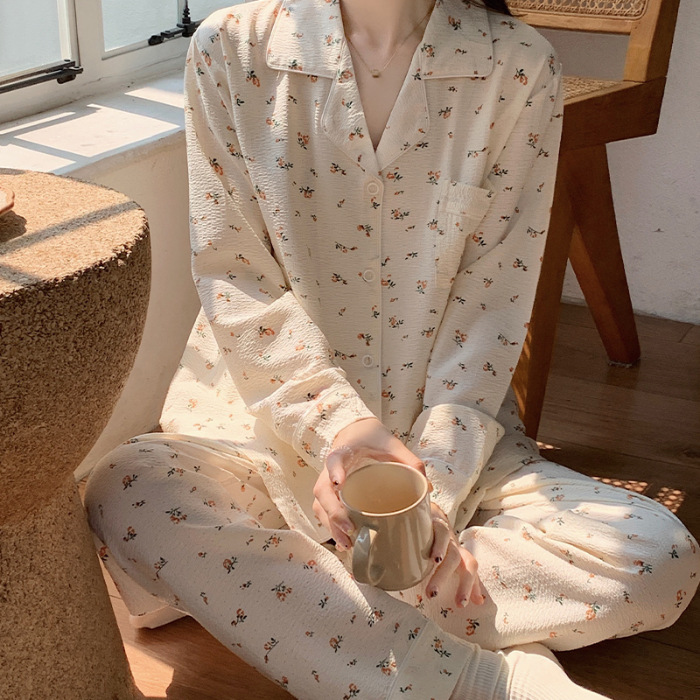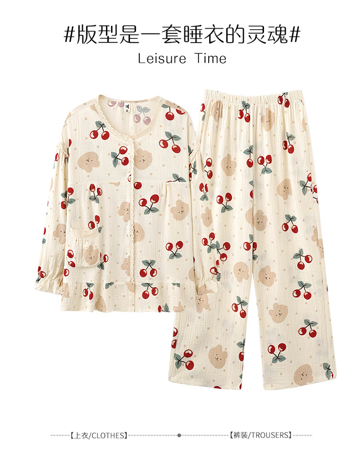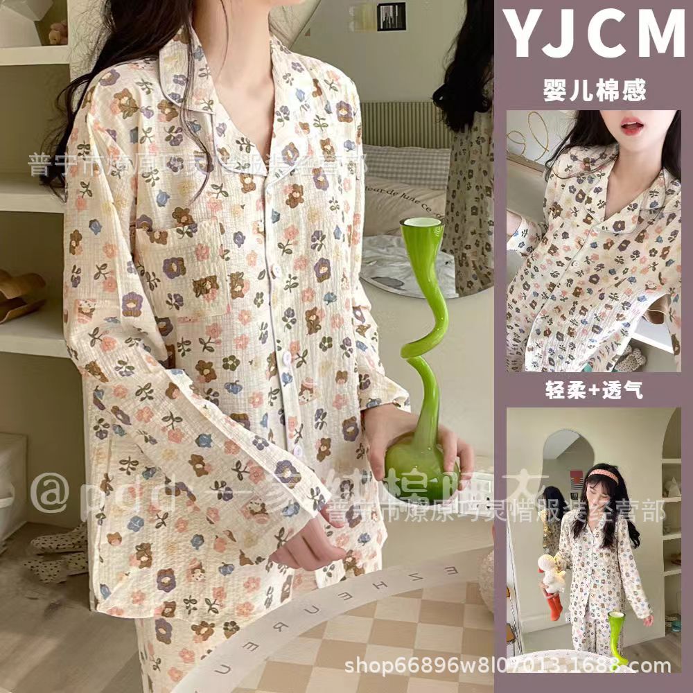 잠옷 여성의 봄과 가을 짠 폼 코튼 주름 긴 소매 만화 공주 스타일 의상 홈 의류 세트스토어 가기