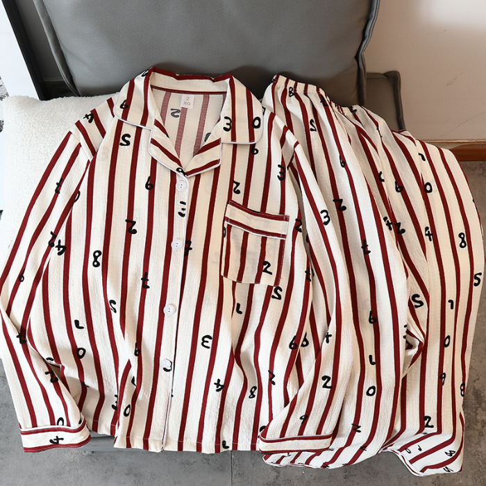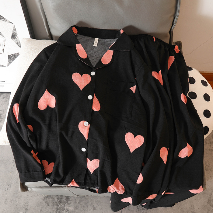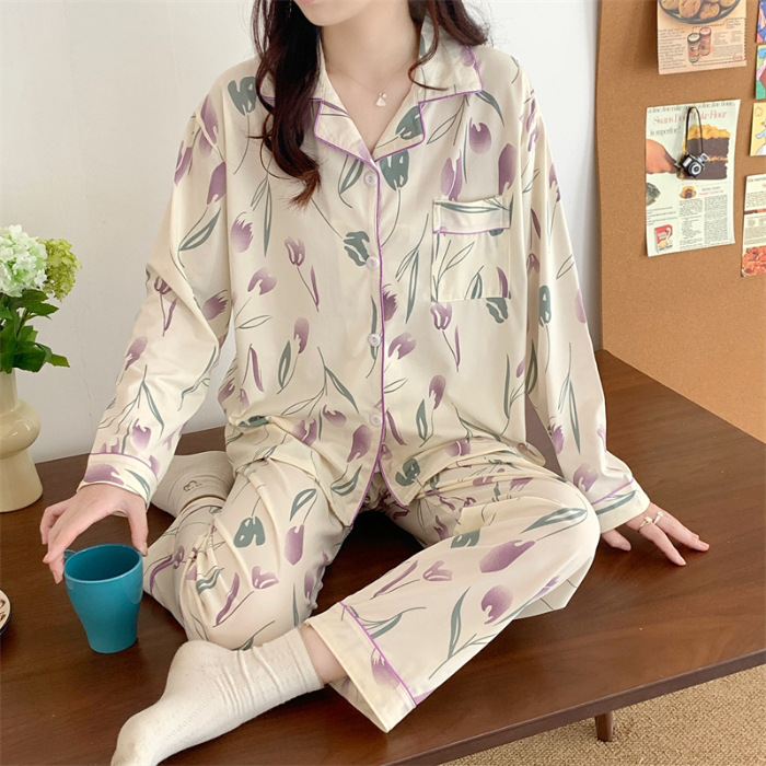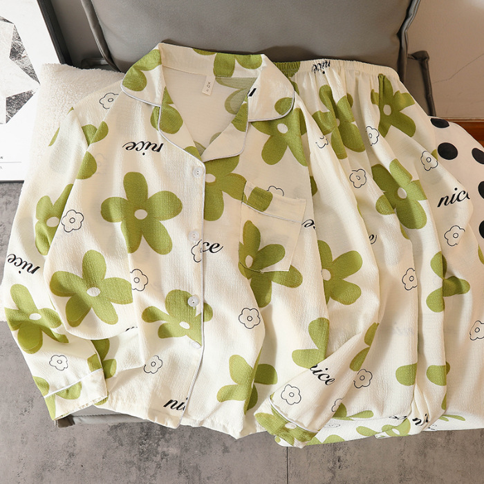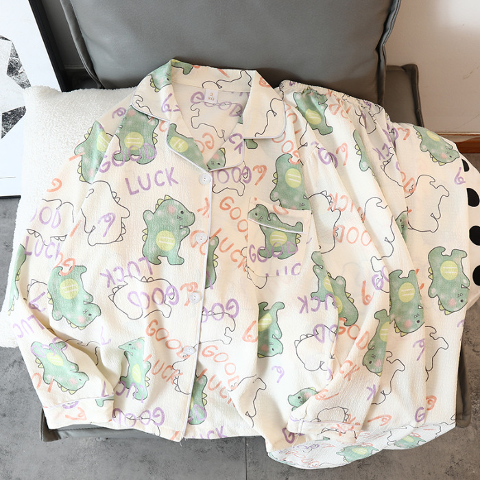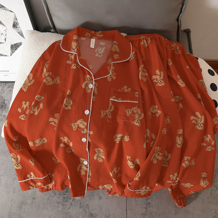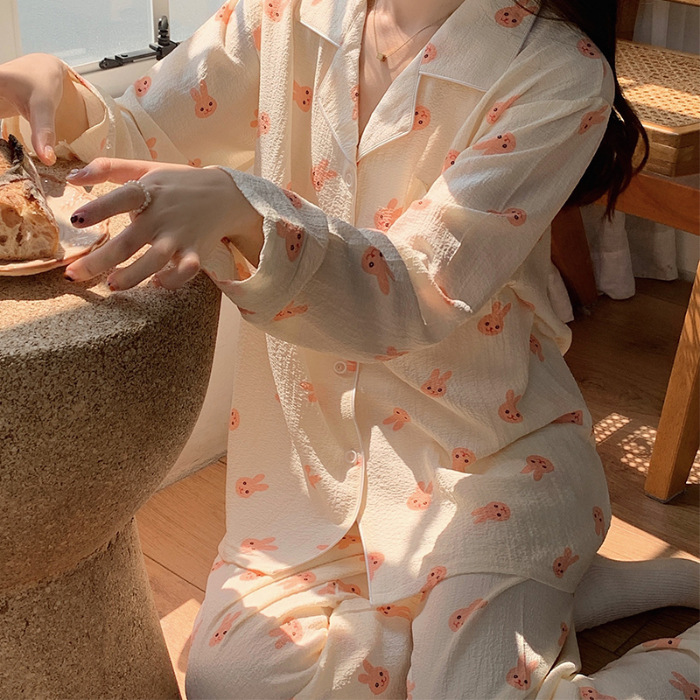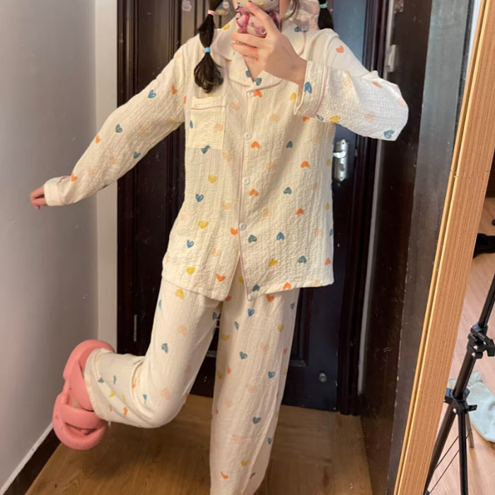 잠옷 여성의 봄과 가을 짠 폼 코튼 주름 긴 소매 만화 공주 스타일 의상 홈 의류 세트