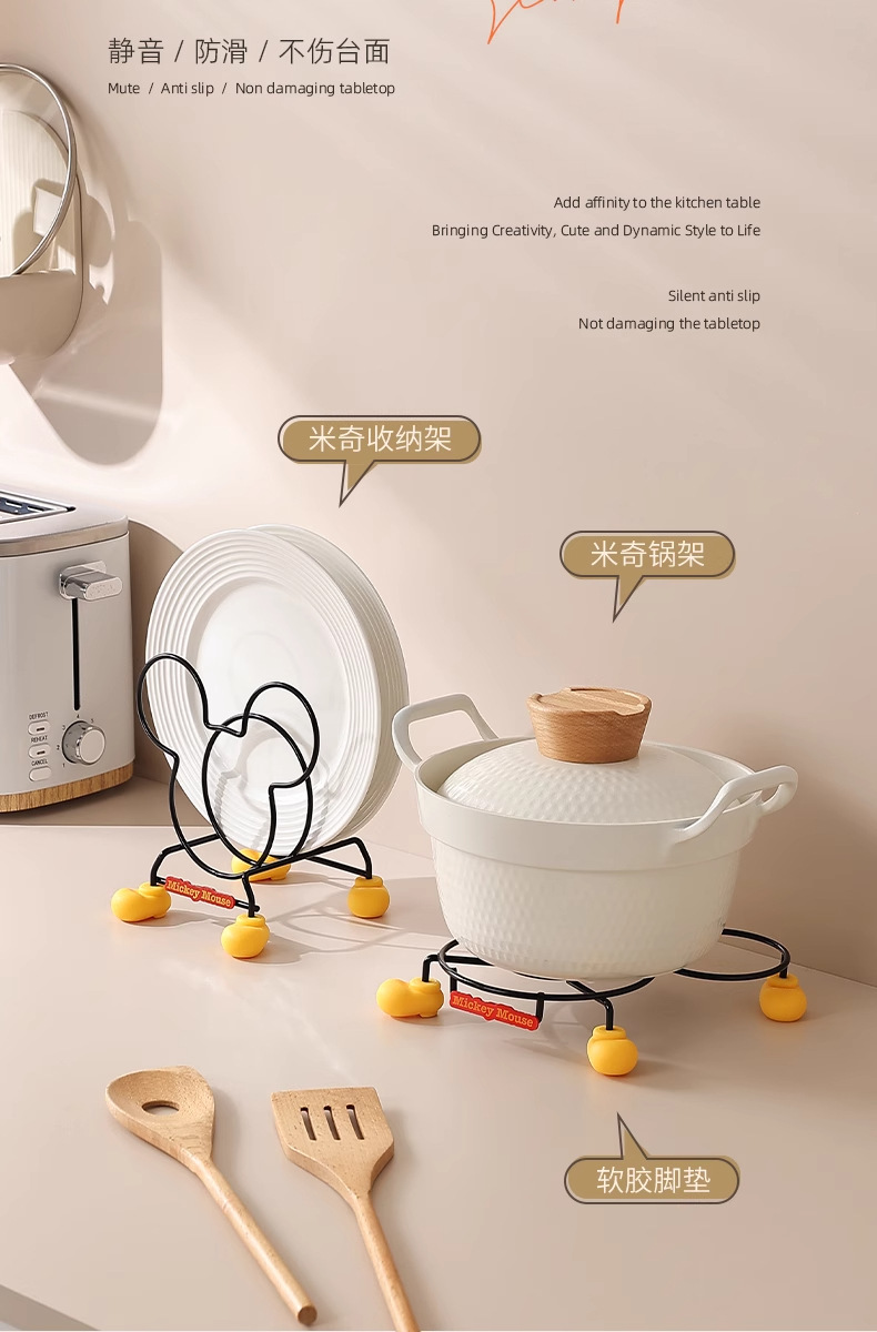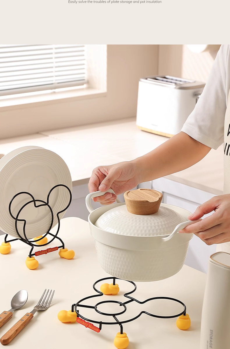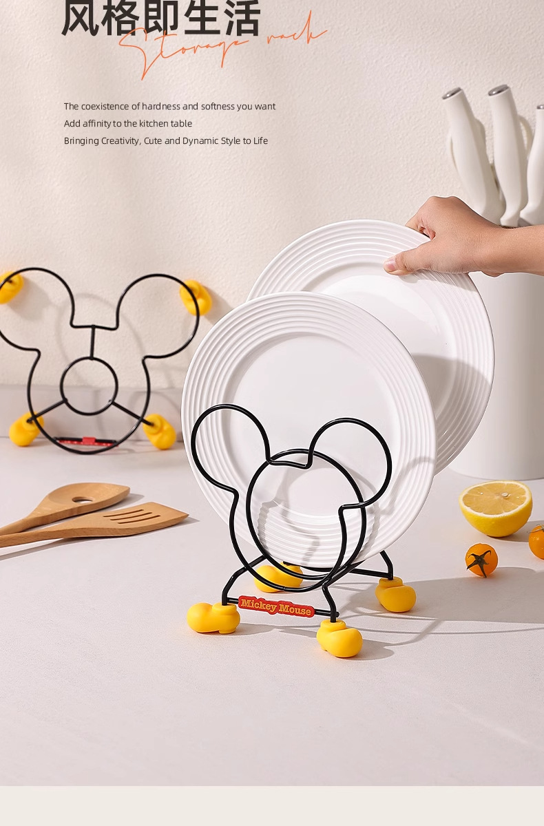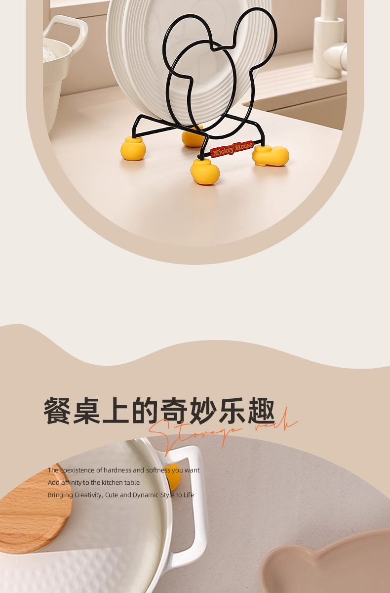 정품 미키 주방 수납 선반 만화 테이블 플레이트 랙 단열 랙 냄비 뚜껑 랙 스토브 수납 랙