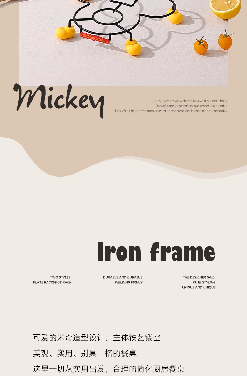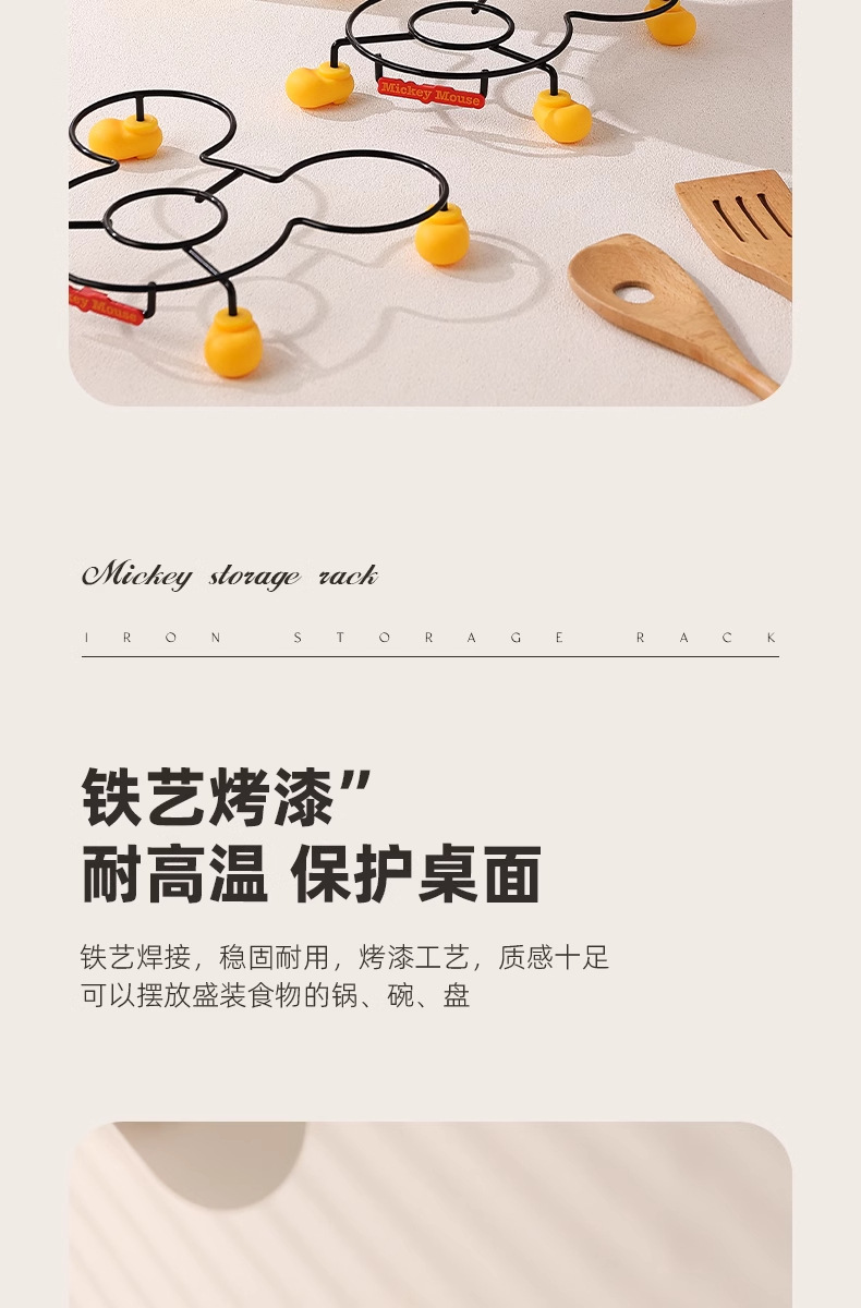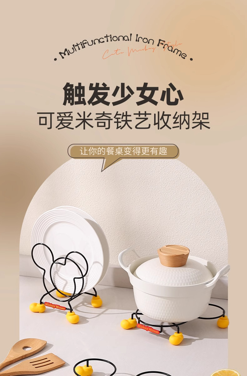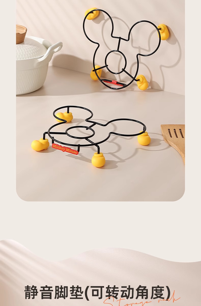 정품 미키 주방 수납 선반 만화 테이블 플레이트 랙 단열 랙 냄비 뚜껑 랙 스토브 수납 랙