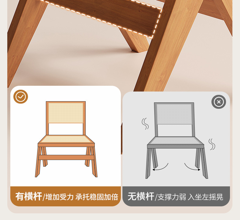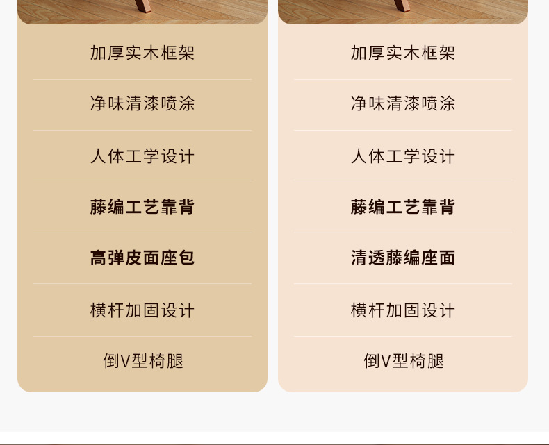 • 등나무 직조 기술 거꾸로 된 V 의자 다리