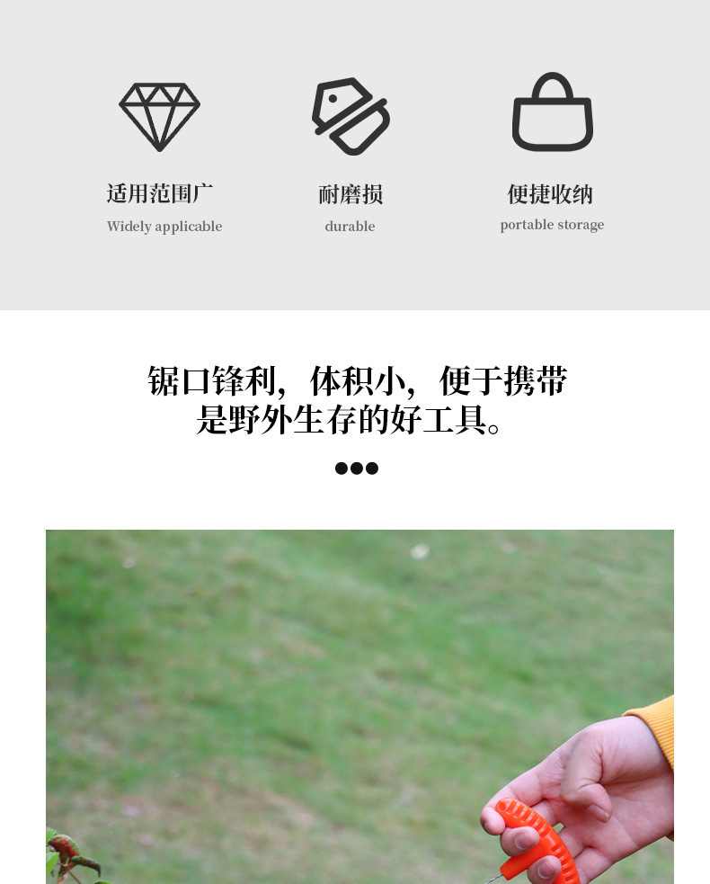 야외 PP 손잡이 미니 포켓은 캠핑 생존 와이어를 보았습니다. 스테인리스 철사는 물 잔디를 보았다