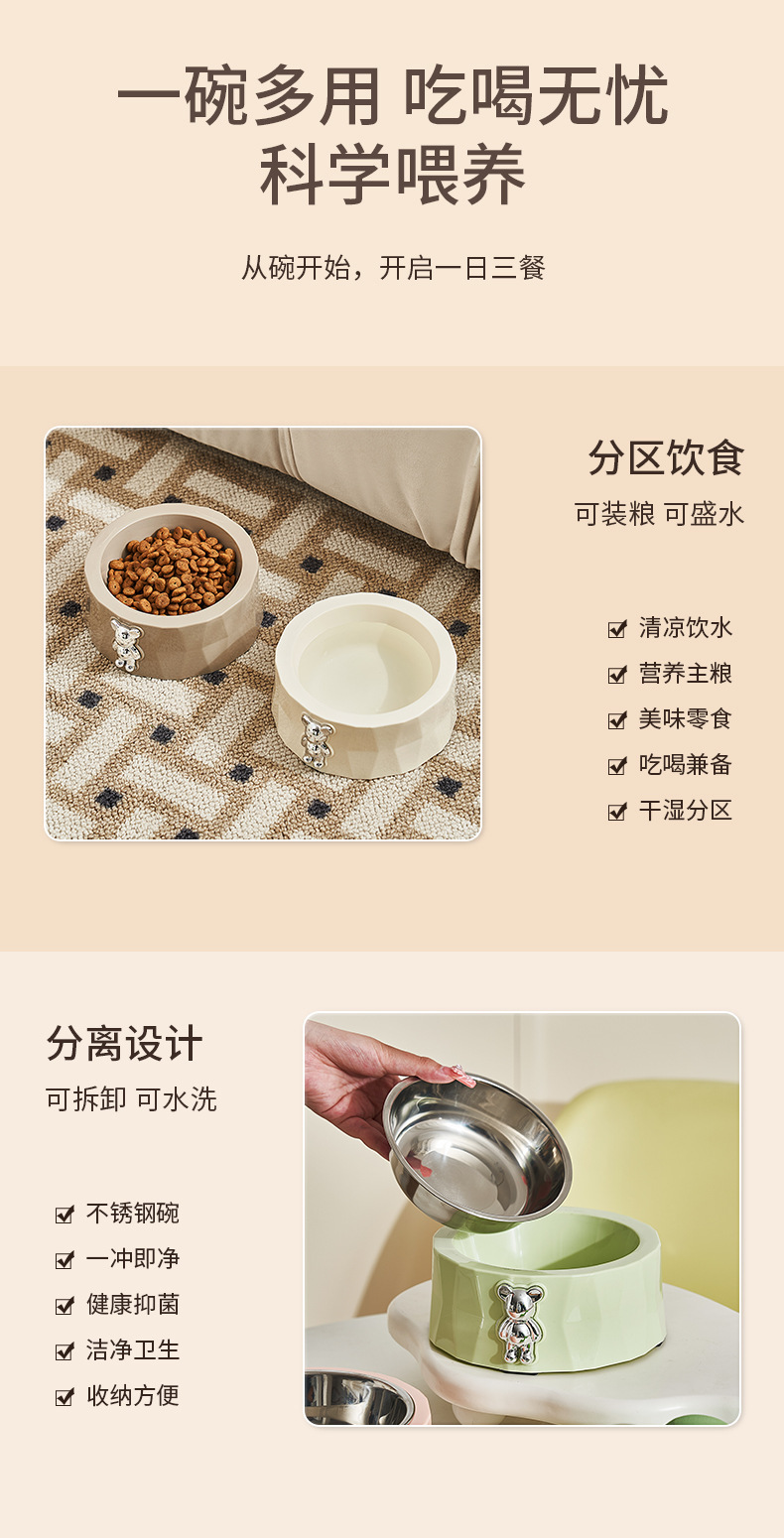 새로운 다이아몬드 곰 이동식 쉬운 청소 개 그릇 고양이 그릇 애완 동물 그릇 스테인리스 개 식기스토어 가기