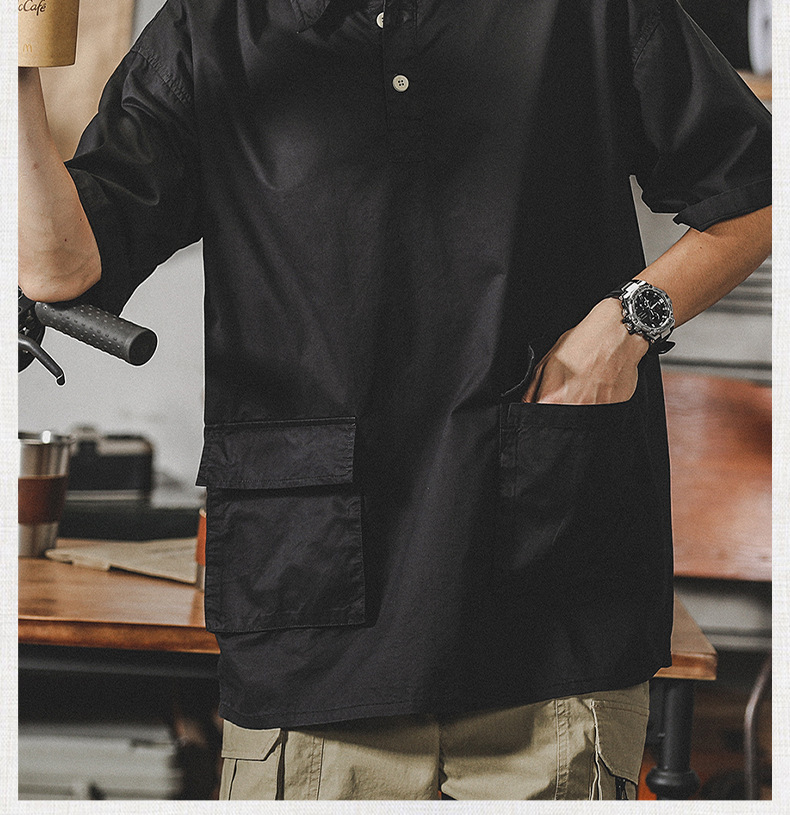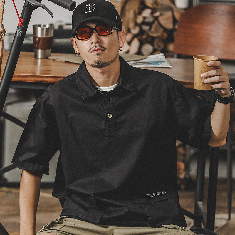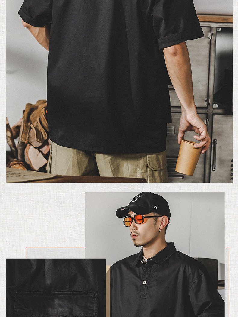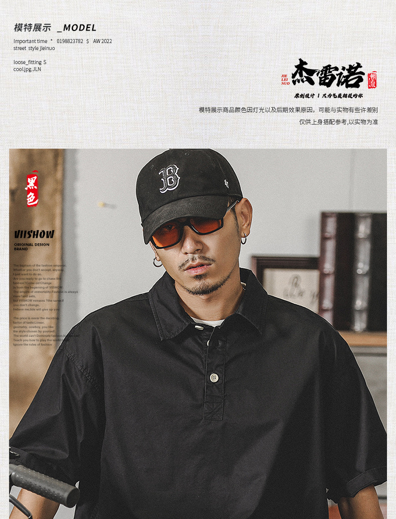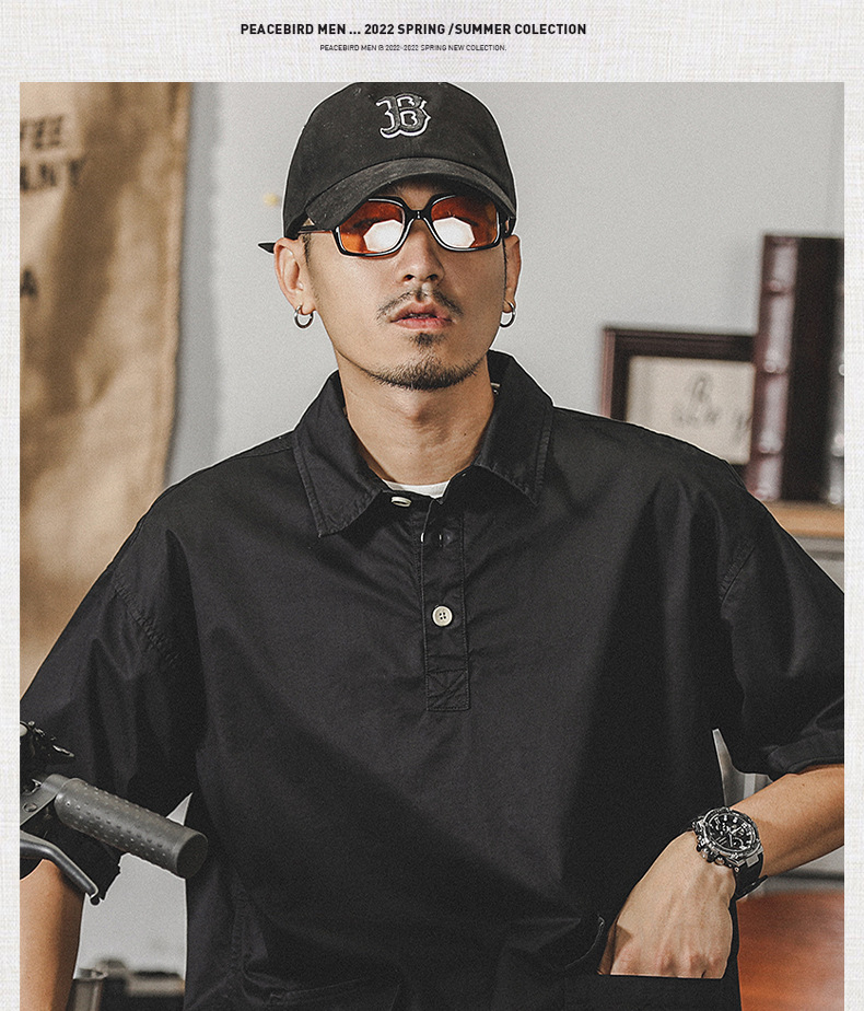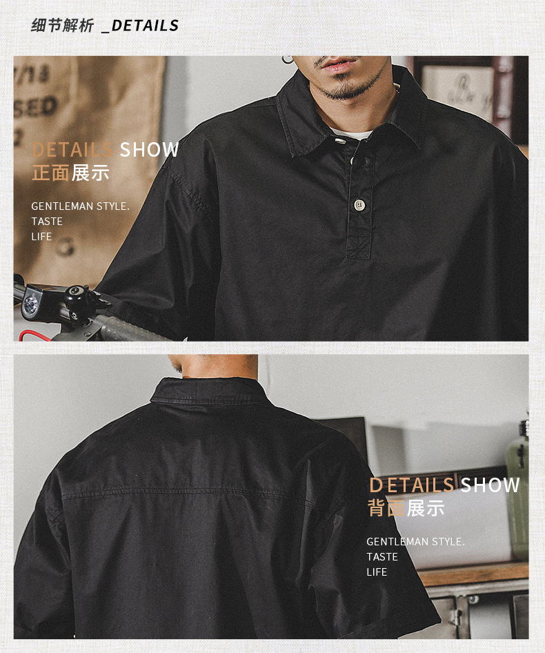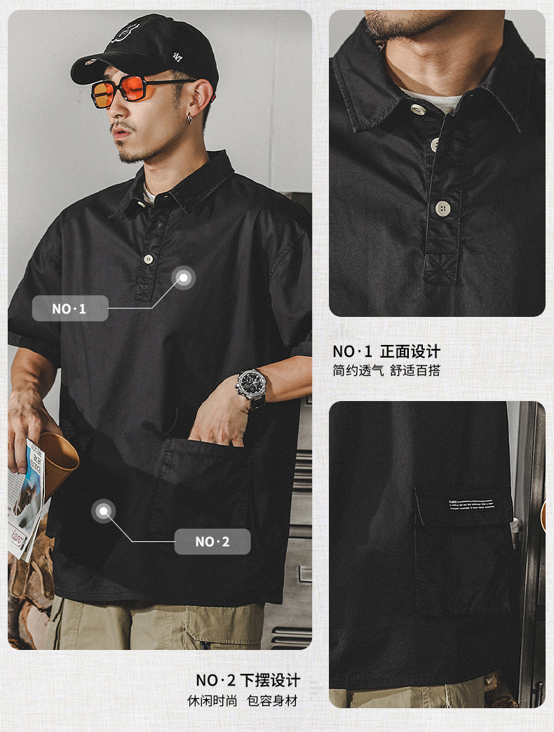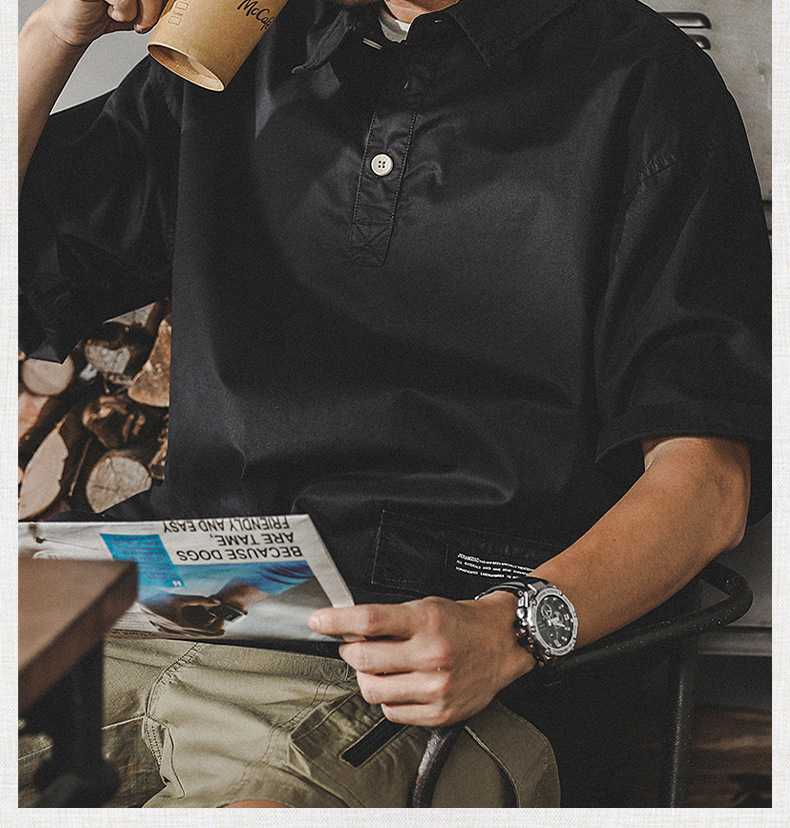 아메리칸 스타일 헤비 레트로 작업 셔츠 남성 반팔 여름 트렌디 브랜드 헤비 티셔츠 남성 여름 탑 폴로 셔츠
