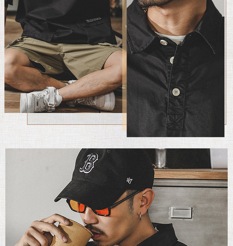 아메리칸 스타일 헤비 레트로 작업 셔츠 남성 반팔 여름 트렌디 브랜드 헤비 티셔츠 남성 여름 탑 폴로 셔츠스토어 가기