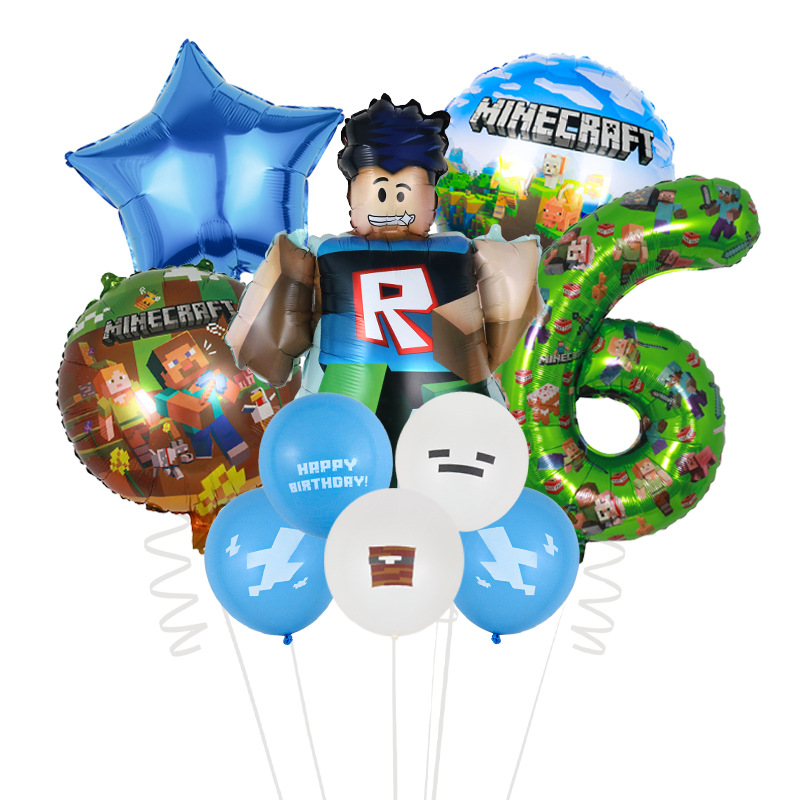 크로스 국경 새로운 내 세계 디지털 세트 풍선 만화 레고 어린이 생일 게임 파티 장식 풍선스토어 가기