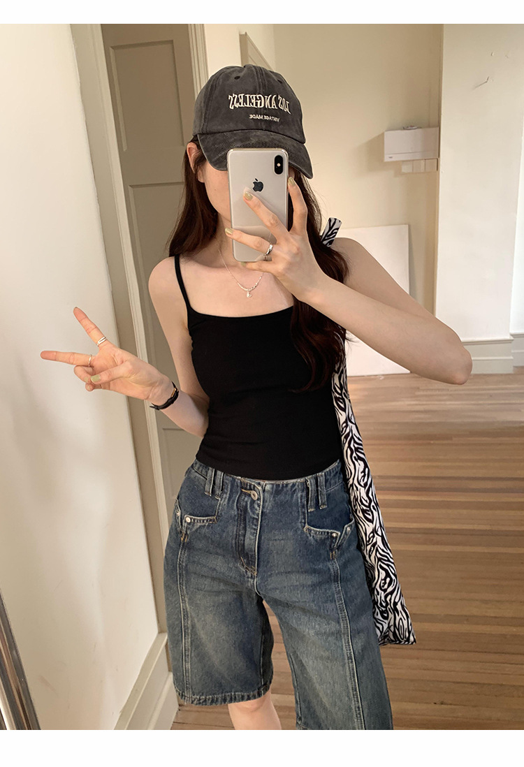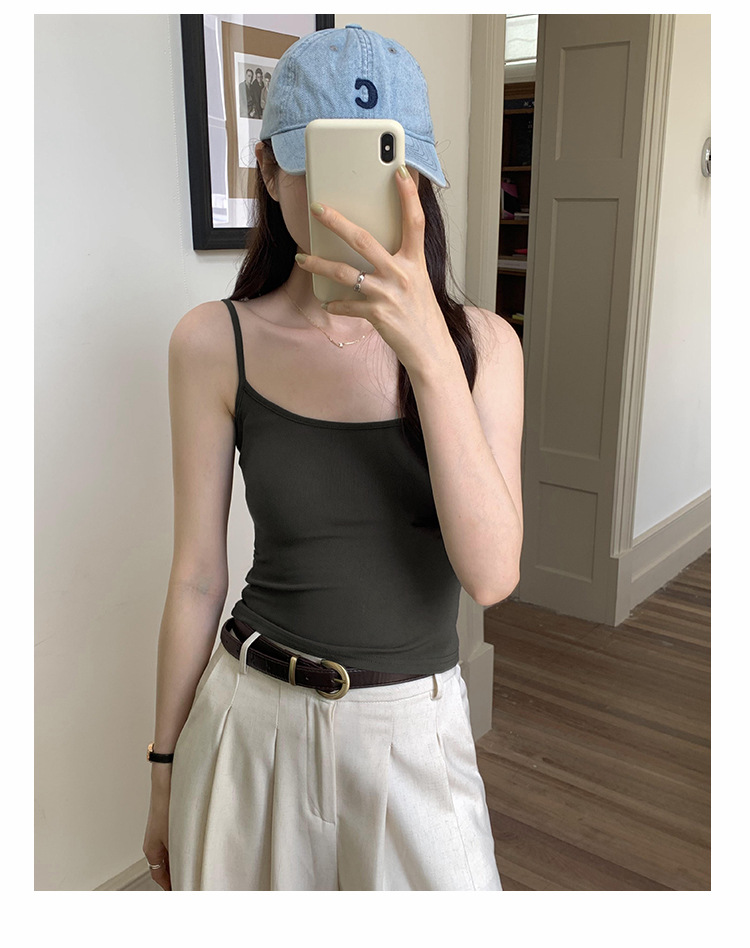 새로운 달콤한 스파이스 소녀 솔리드 컬러 카미 솔 조끼 긴 가슴 패드와 여성 여름 긴 아름다운 백 랩 가슴 착용 베이스 퓨어 코튼 탑스토어 가기